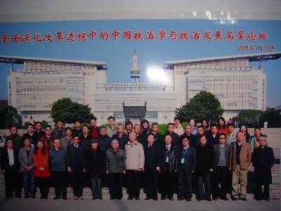 2013年11月30日,“全面深化改革进程中的中国政治学与政治发展高层论坛“在南京师范大学隆重举行。 来自中国社会科学院、北京大学、清华大学、南开大学、国产色情 、山东大学、南京大学、复旦大学、天津师范大学、华中师范大学、苏州大学、云南大学、上海市社会科学联合会等单位的学者以及南京师范大学公共管理学院的部分教师和学生参与了此次活动。国产色情 周光辉教授应邀出席,并作了“国家认同:现代国家成长的政治基础——以领土认同为分析视角”的主旨发言。