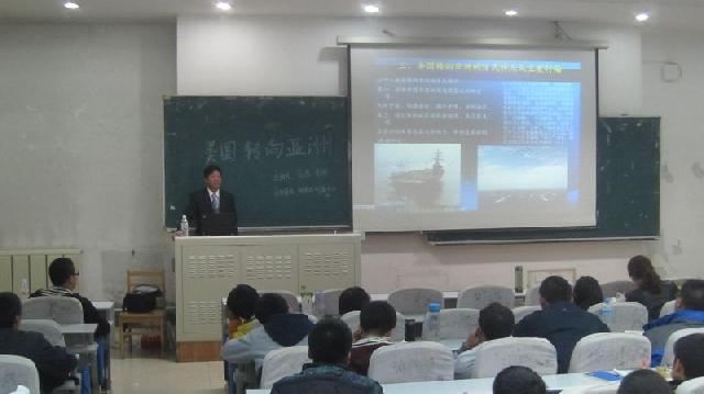 研究生创新中心”邀请,在教学楼十六阶为我校“研究生人文及科学素养提升计划”做了题为“朝鲜半岛局势变化与我国的战略应对”的人文社科系列讲座报告。讲座获得广大同学们的欢迎,帮助研究生同学开阔了知识视野,拓宽了知识广度。继上述两次报告之后,王生教授再次被邀请于2012年10月23日晚在前卫中心校区为我校“研究生人文及科学素养提升计划” 做了一场题为《美国“转向亚洲”及亚太形势新变化背景下我国的战略应对》的人文社科系列讲座报告。受到了广大同学们的好评。