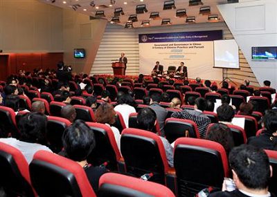 此次国际会议主题论坛为“中国政府与治理:百年的求索与实践”,清华大学副校长谢维和教授、美国公共管理学会候任主席刘国才(Kuotsai Tom Liou)教授出席开幕式暨主题论坛并致辞。香港中文大学政治与公共行政学系主任、讲座教授王绍光,牛津大学当代中国研究中心主任、Leverhulme讲座教授许慧文(Vivienne Shue),清华大学公共管理学院教授、国情研究中心主任胡鞍钢分别做了题为 “百年中国的政道:治能、政府与治理”(China’s Governmentality in the Last Century: Governability, Government, and Governance), “中国国情下的公共领导力”(On Public Leadership in the Chinese Context), “现代中国经济社会转型:从二元结构到四元结构(1949-2009)”(Development & Transformation in Modern China: From Two-sector to Four-sector (1840-2009))的主题演讲。
