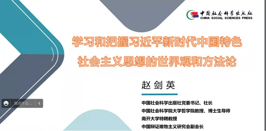 第21期名家讲座在腾讯会议平台举行。中国社会科学出版社党委书记、社长、中国社会科学院大学哲学院教授、中国辩证唯物主义研究会副会长赵剑英教授受邀担任主讲嘉宾,作题为“学习和把握习近平新时代中国特色社会主义思想的世界观和方法论”的学术讲演。讲座由国产色情