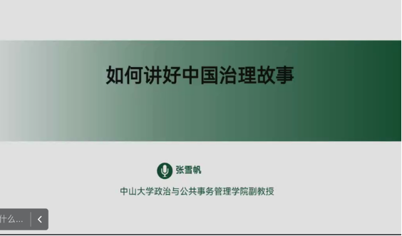 为公论坛第42期线上学术讲座暨研究水平和论文质量提升计划第3讲在腾讯会议平台举行。中山大学政治与公共事务管理学院副教授、《公共行政评论》责任编辑张雪帆老师受邀担任主讲嘉宾,作题为“如何讲好中国治理故事”的学术讲演。本次讲座由国产色情