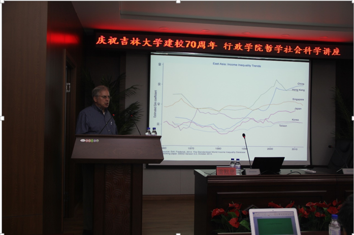 此次报告从全球和地区比较层面上,关注了经济增长、分配不平等、社会凝聚水平及政治极化等议题之间的关系。雷明顿教授首先从一个较长的历史周期切入,综合利用相关经济数据,演示了世界总体、发达国家、后发国家在经济增长和收入分配中的变化分布状况。批判借用皮凯蒂关于收入不平等研究的理论发现和理论资源,雷明顿教授认为当前世界和各国(无论发达国家还是后发国家)如果存在一个普遍的、真实的、性质相似的发展问题,便是分配不平等及这种不平等愈发严重。而且,在控制其他变量不变及量化调整经济发展水平差距的前提下,后发国家对全球分配不平等的贡献比例愈发加大,单一国家内部的分配不平等和跨国分配不平等的关系也愈发紧密。据此,雷明顿教授认为分配不平等深刻的影响了其它问题。