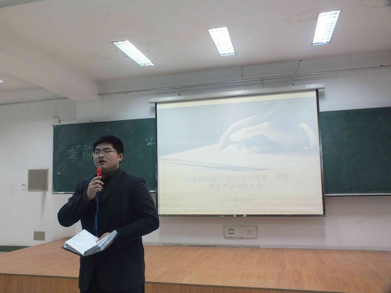 本科生考试纪律及注意事项》,她希望大家能够严守考试纪律、端正考试心态,充分发挥自身水平。她还分别对2012级本科生转专业、期末考试缓考等工作做了详细的说明。刘洋则对近期同学们在学习、生活方面存在的问题提出了建议,并希望同学们认真遵守学校、学院的考试纪律,认真备考,争取在考试中取得好成绩。