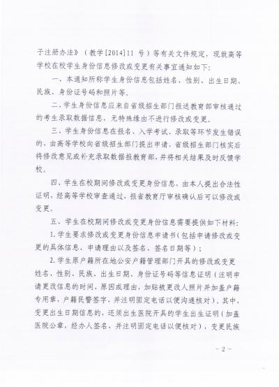 请各相关单位认真领会文件精神,充分了解通知中的各项工作内容,做好我校在校学生个人信息的修改或变更工作。