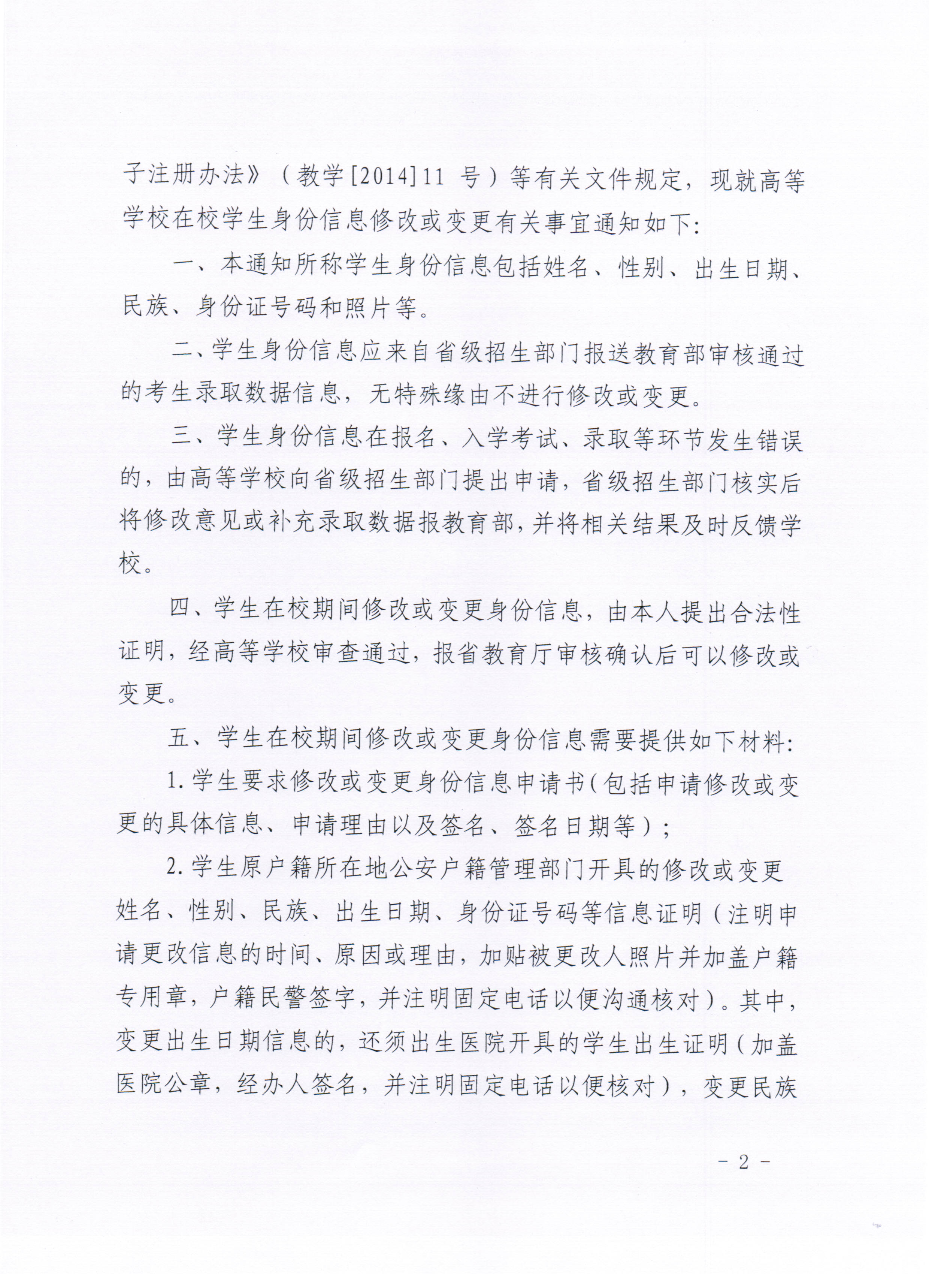 附件:《关于进一步做好高等学校在校学生身份信息修改或变更等有关工作的通知》