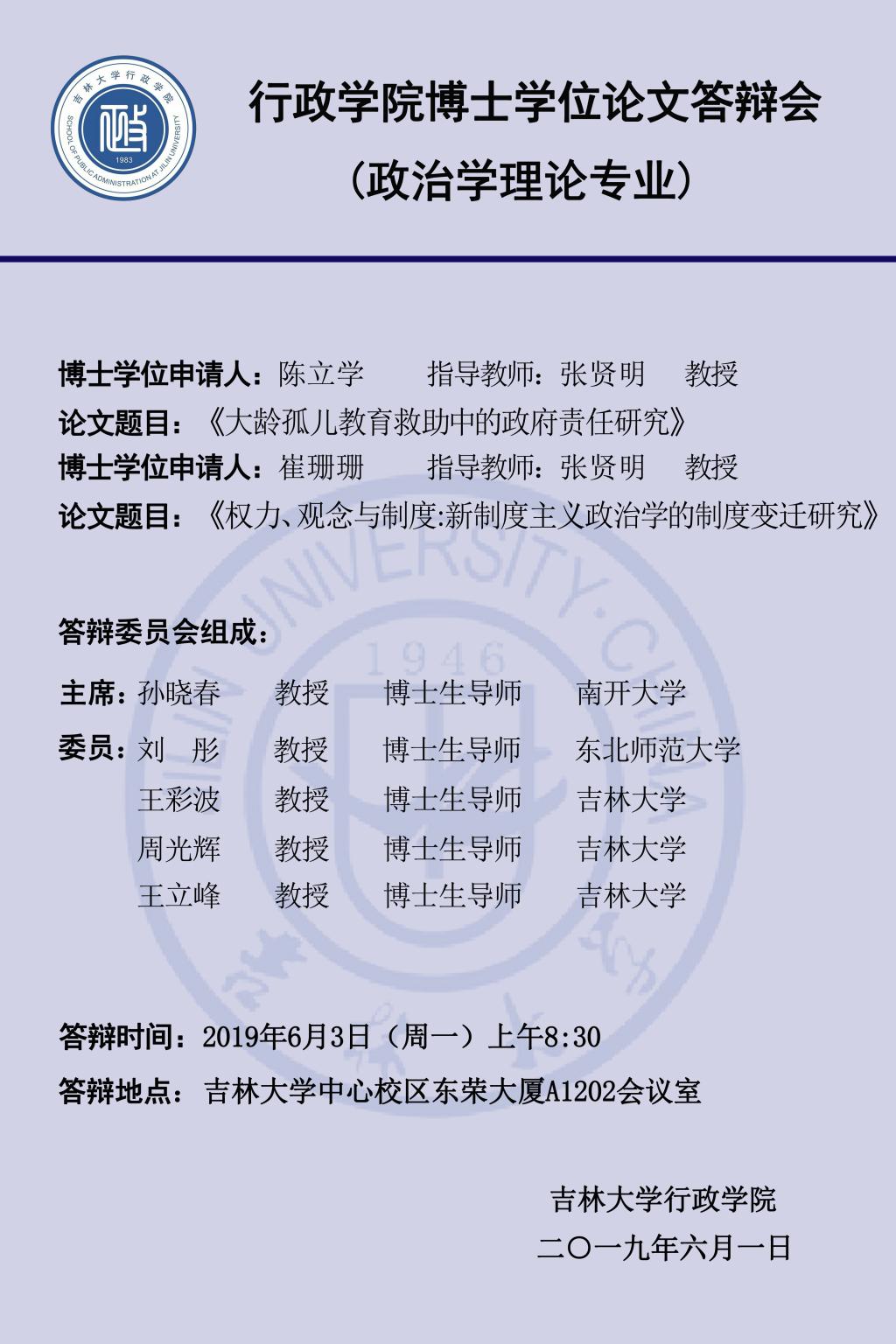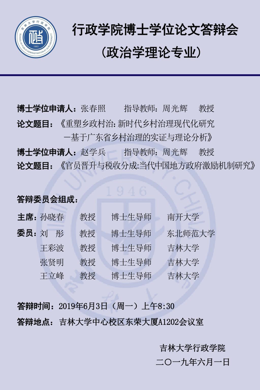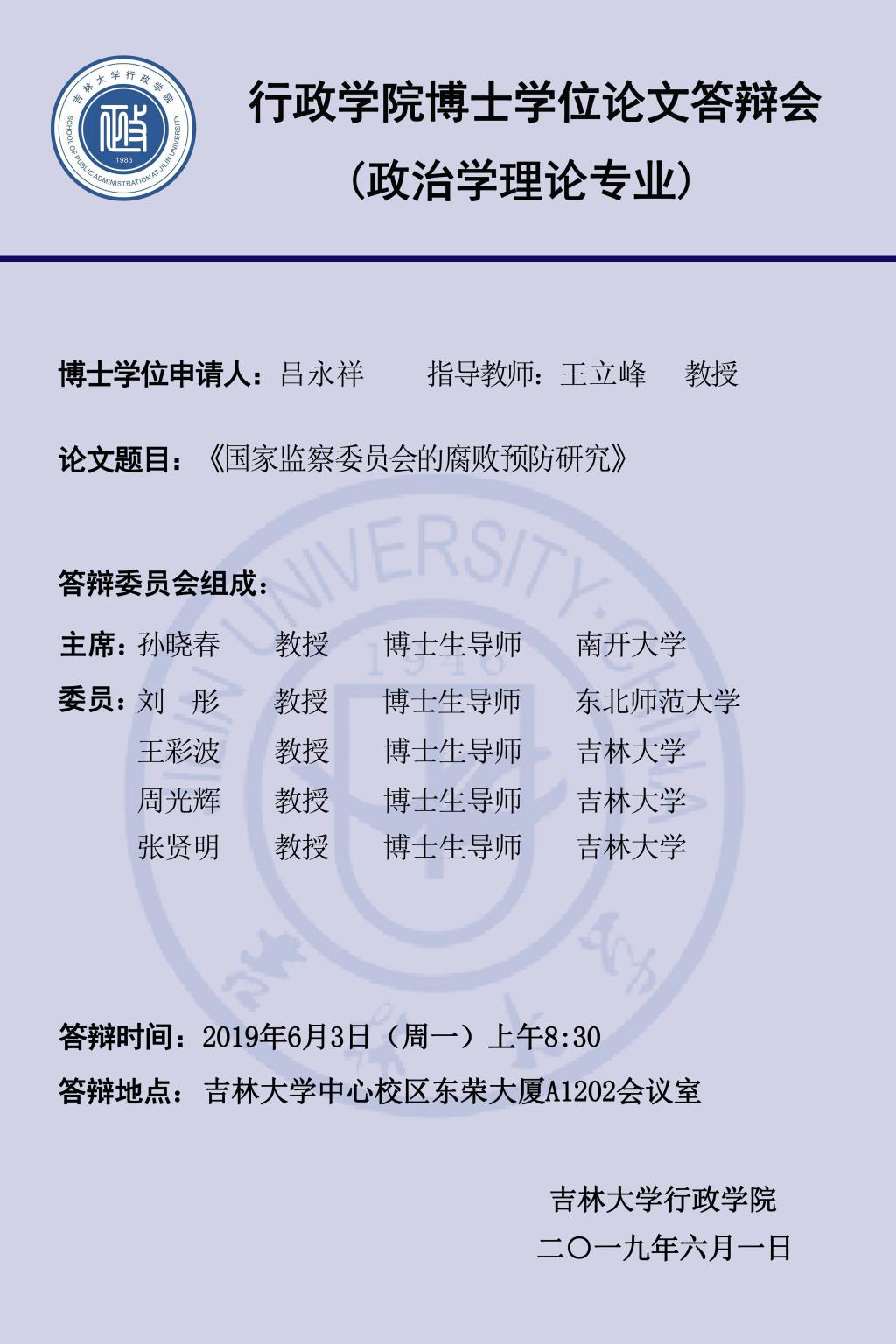 答辩学生:吕永祥、陈立学、崔珊珊、张春照、赵学兵(答辩顺序以导师姓氏笔画为序,同一导师名下学生按姓氏笔画为序)