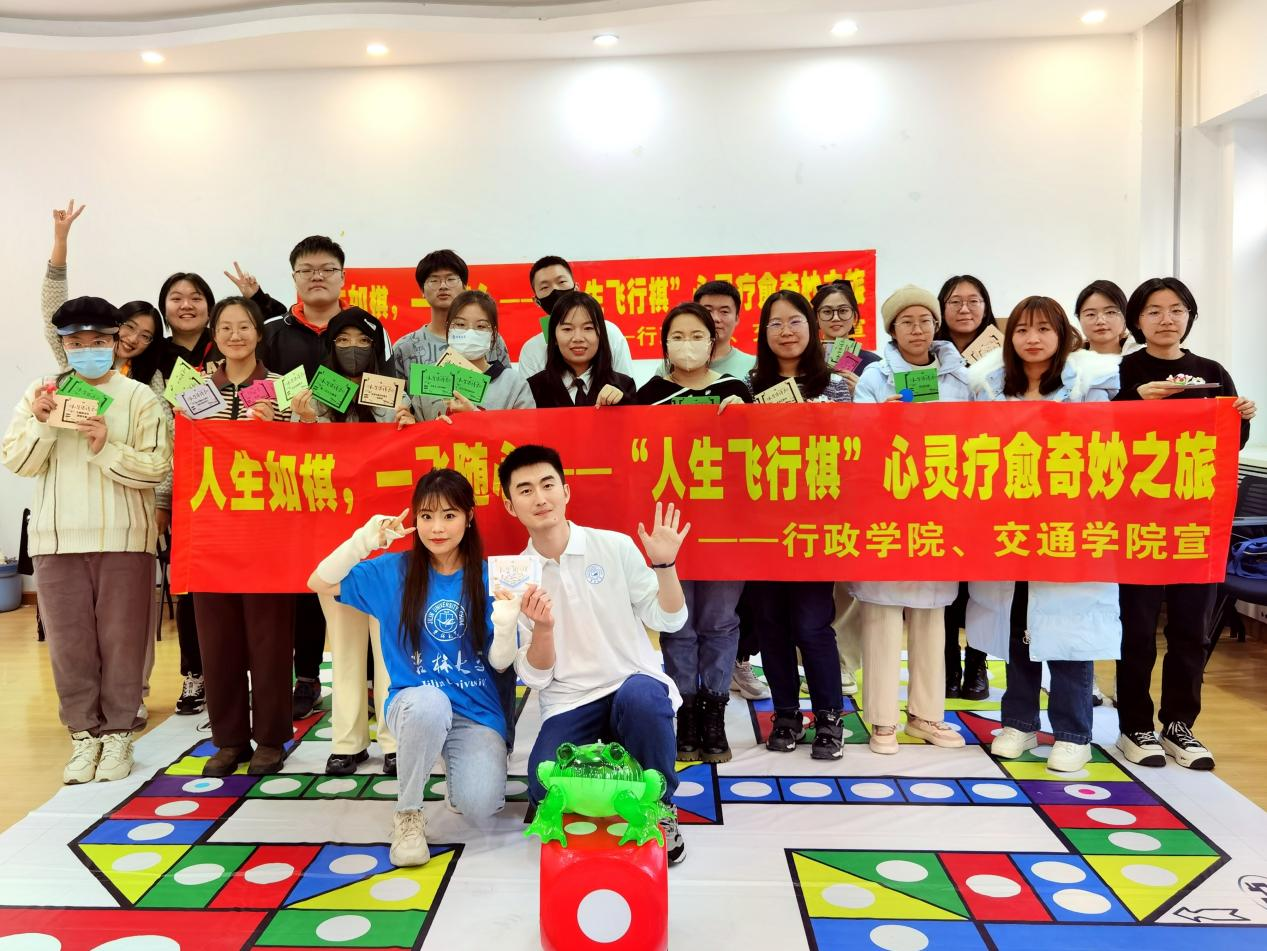 和交通学院于11月18日、11月19日在前卫校区敬信楼A101教室联合举办“人生飞行棋”心灵疗愈奇妙之旅活动。活动以飞行棋的游戏模式展开,参与者通过投掷骰子前进,不断单向获取或舍弃“人生选择卡”,并在“人生中转站”通过集体完成任务解锁后续人生地图,最后保留自己最珍视的“人生选择卡”到达时光隧道,准备进入下一段精彩的人生。同学们在本次活动中逐渐敞开心扉、释放压力,心灵得到了的放松和成长。