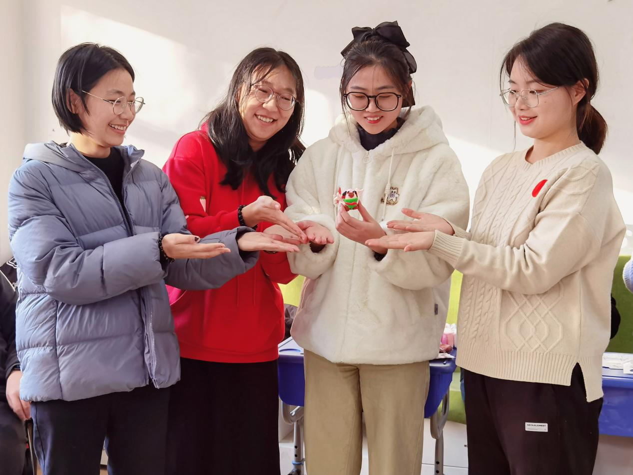 在组织统一的集体任务之余,同学们还可以根据投掷步数来自行选择自己感兴趣的组内任务,比如制作手工纸盒小狗、DIY轻黏土、抠糖饼等小游戏。而组间PK赛的加入又一次炒活了场上的气氛,活动全程整散有序,极大提高了同学们的可选择自由度,主持人与工作人员的默契配合也为同学们带来了良好的活动体验感。