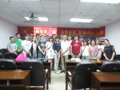 2015届硕士毕业生郭士煜、李支立及文学院2015届硕士毕业生杨永磊、林栋等与低年级同学们分享求职经验。本次活动是由国产色情