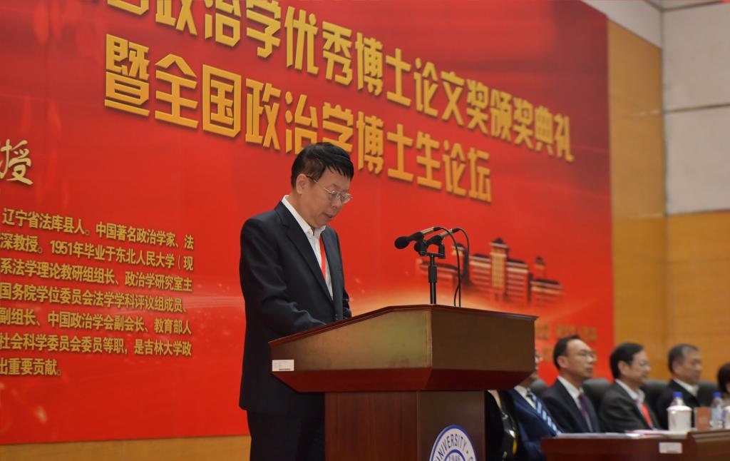 全体师生向参加颁奖典礼的各位嘉宾表示热烈的欢迎。他在致辞中介绍了王惠岩政治学优秀博士论文奖设立初衷,并详细说明了首届王惠岩政治学优秀博士论文奖的评审过程,并对中国人寿保险股份有限公司吉林省分公司、中国政治学学界前辈和各位同仁、国产色情