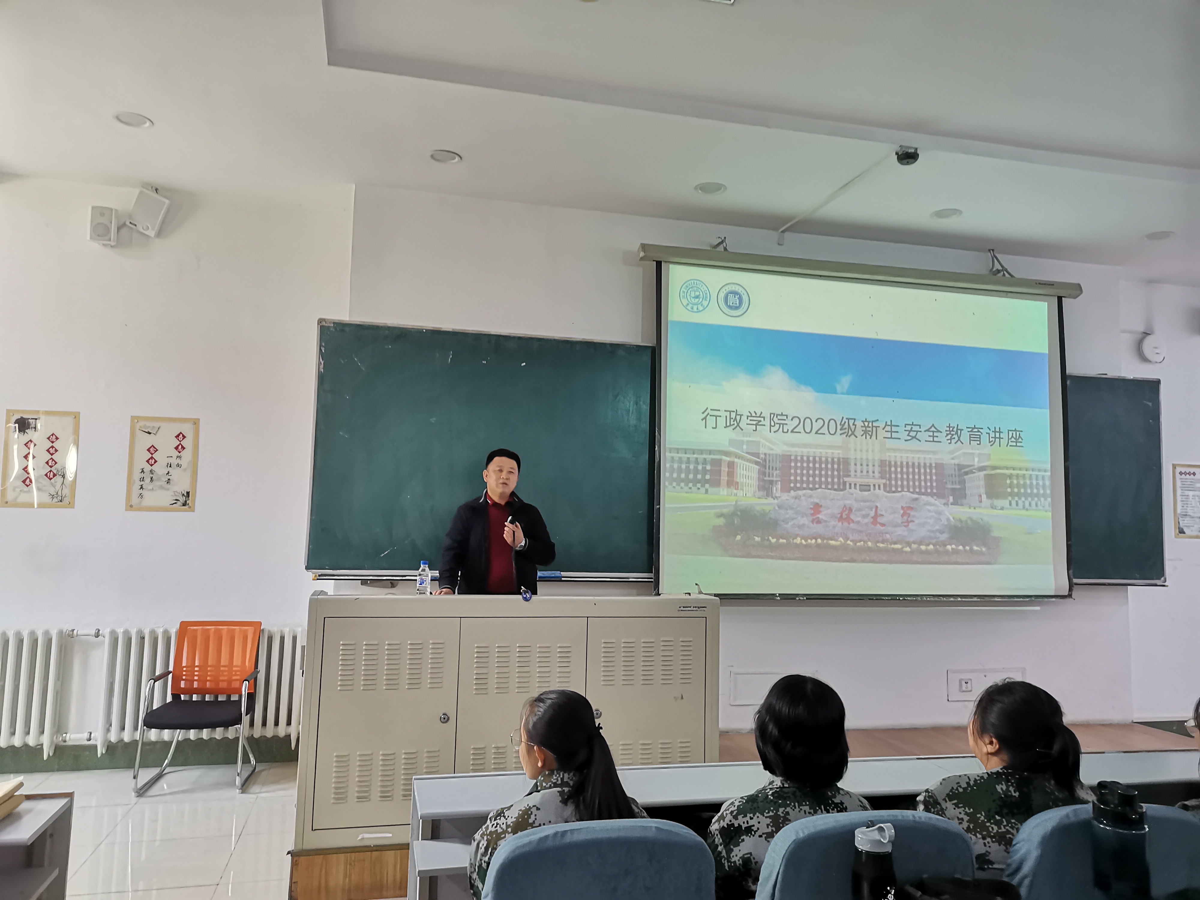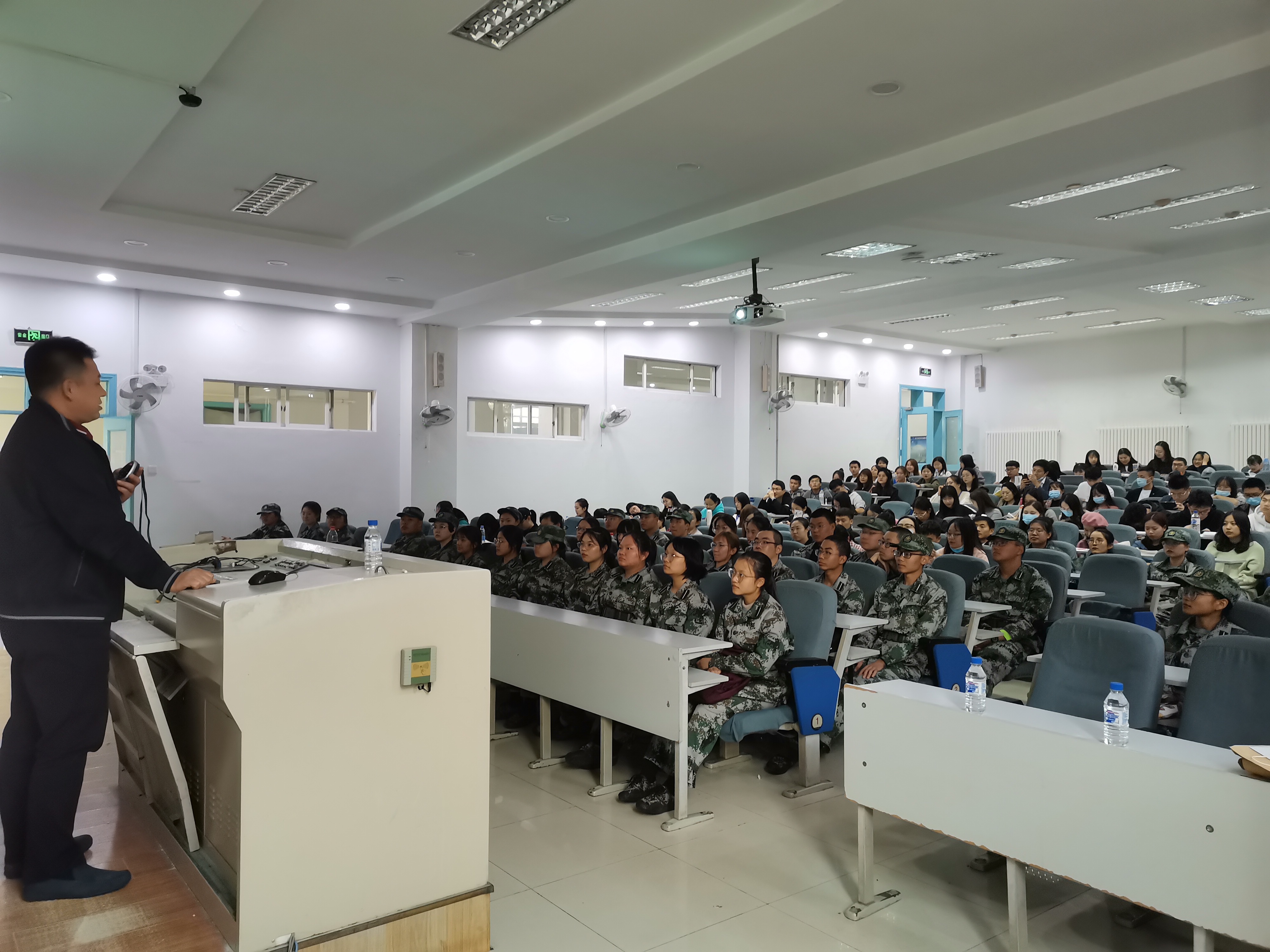 范斌老师从人身安全、财产安全两方面为同学们讲解了日常生活中的一些安全防范技巧以及自我保护的相关注意事项。首先,在人身安全方面,一要注意饮食安全,去食品安全有保障的餐厅就餐,二要注意交通安全,遵守交通规则,三要注意消防安全,严防火灾发生。范斌老师着重强调每个学生都应该为自己的生命安全负责,出门在外要及时将自己的行踪告知辅导员或朋友。其次,在财产安全方面,他提醒大家进出寝室应及时关闭门窗,以免造成不必要的财物损失,并通过身边发生的一系列典型案例,警示大家要注意防火、防盗、防骗,时刻保持冷静,维护财产安全。最后,范斌老师代表学院表达了对同学们的祝福,希望同学们在校期间学业顺利,实现梦想。