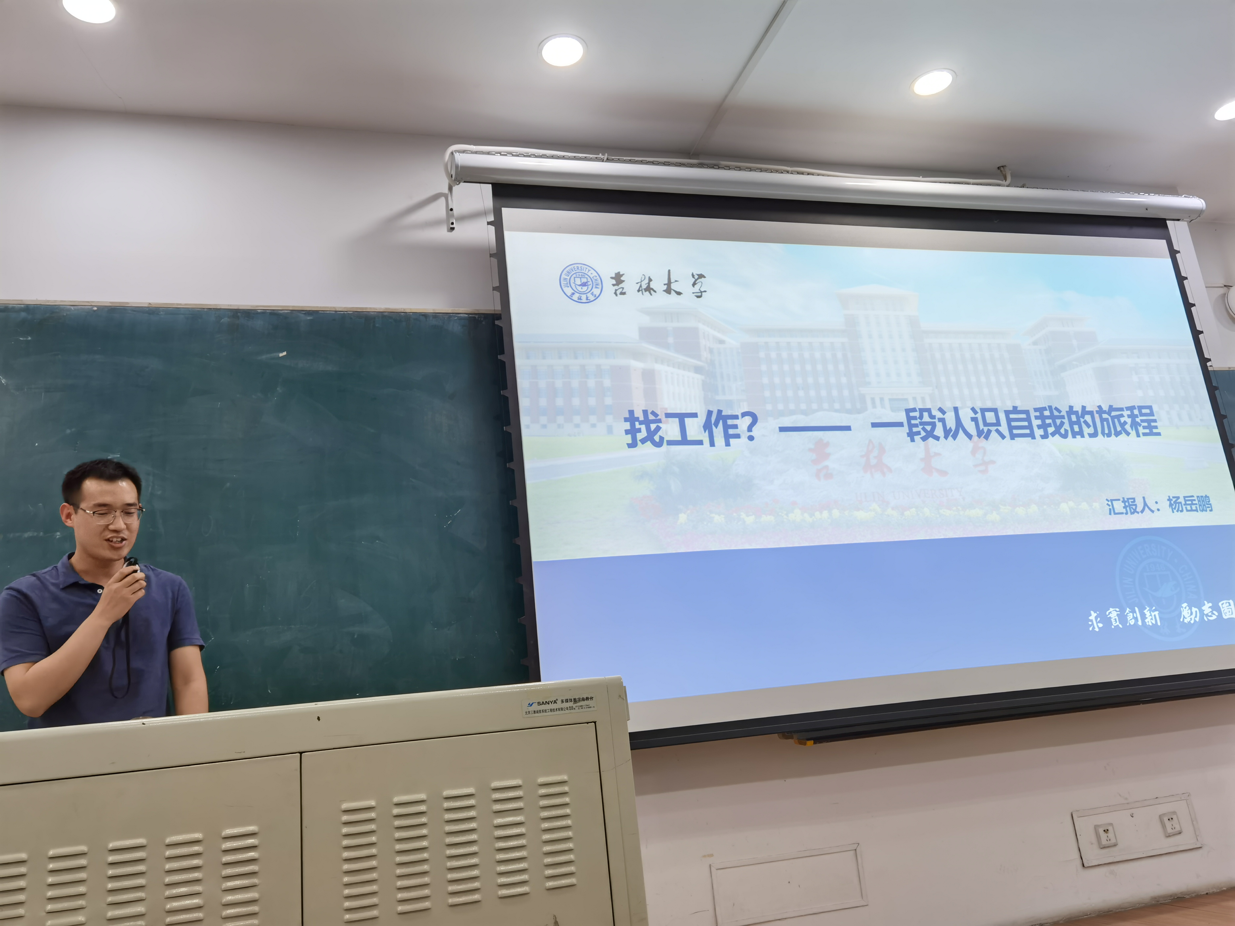 活动中,受邀而来的四位优秀毕业研究生轮流从不同的角度出发,讲述和分享了他们自身的经历和体会:徐飘同学围绕着校招前准备、校招进行过程中、offer的选择这三个阶段,向大家述说了她在企业的就业经历,分享了自己的感悟;杨岳鹏同学将求职的过程视为一段认识自我的旅程,他首先介绍了自己丰富的求职经历,此外强调了几点大家在求职期间可能需要注意的地方;王迪同学主要向我们分享了他的深圳教师求职经历,并着重向我们介绍了关于“无领导小组讨论”的准备策略;梁作栋同学从企业职员、初高中教师、高校辅导员、公务员这四个就业方向出发,向大家讲述了他本人近半年的求职体会,同时他还同大家分享了自己考公上岸的宝贵经验。