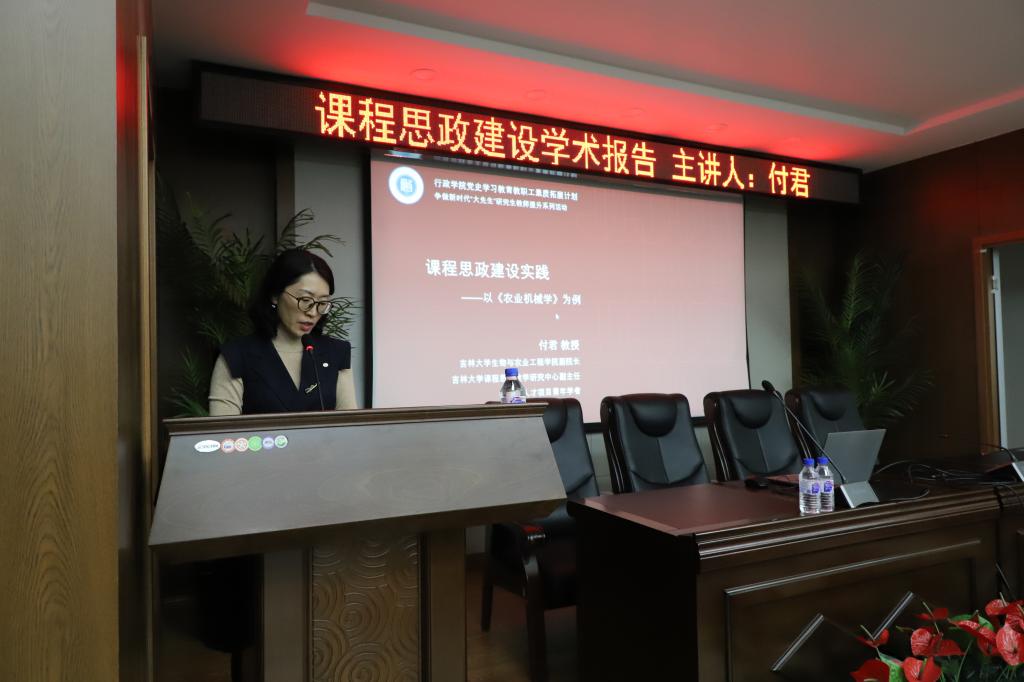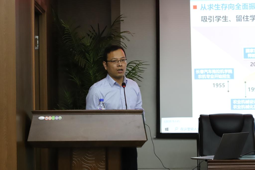 生物与农业工程学院副院长、博士生导师付君教授作为主讲,以《农业机械学》为例分享了生物与农业工程学院课程思政建设经验。报告由学院党委副书记史慕华教授主持,学院研究生导师及部分职工参加报告会。