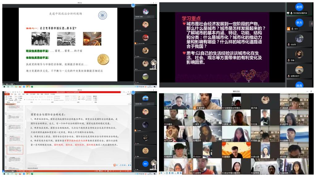在线教学方面,当前已根据教学计划正常开课的25门学术硕士课程、10门博士课程中,授课教师们采用腾讯会议固定会议室、钉钉班级群、智慧树等多种线上平台进行授课,通过课前资料发放、课上即时互动、直播与录播交错、课后课程群内解答等多种方式优势互补、灵活结合,全力保障了线上授课的内容深度与授课效果。
