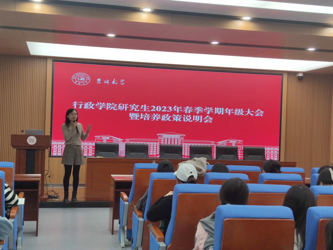 为高质量推进我院研究生学业规划指导,引导研究生树立科学的职业生涯规划与就业意识,不断推动学院学风建设走深走实,4月17日下午我院在东荣B102报告厅举行研究生2023年春季学期年级大会暨培养政策说明会,研究生思政辅导员高琛、研究生秘书宋佳晖及2021级全体研究生参加此次大会。