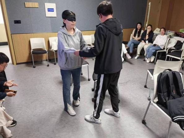 随后是“我知道”活动过渡将同学们分成几个小组,在组内完成自我介绍与信息记忆,并以小组为单位参与到“信任之旅”“集体登陆”“人体字母”三个集体活动中来。