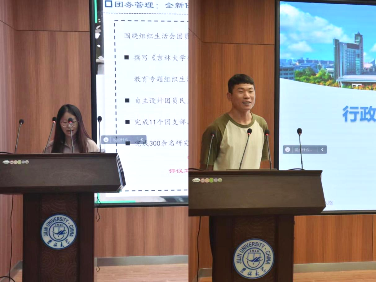 会议伊始,团学组织各部门负责人依次进行工作总结汇报。组织建设部负责人金浩楠从部门日常工作、部门特色工作、部门重大工作以及院院联动工作四个部分展开汇报。新闻宣传部负责人张梓琦从本职工作完成情况、部门成员参与团学工作情况、新闻宣传部未来发展三个方面总结工作内容。生活事务部负责人王思源围绕求职创业补贴材料审核、研究生寝室安全检查、标兵宿舍评比等工作对部门工作任务进行了总结。发展指导部负责人冯思嘉详细介绍了部门所开展的暑期实习实践分享会、往届生就业经验分享、组织实习实训讲座等活动。学术文化部负责人于默暄从集体合作、学术活动、材料撰写、日常工作、线上工作五个方面梳理过去一学年的工作成效。文艺体育部负责人张景国对学院迎新晚会、学校“院系杯”、“研冠杯”、“导学杯”等文体活动进行回顾。