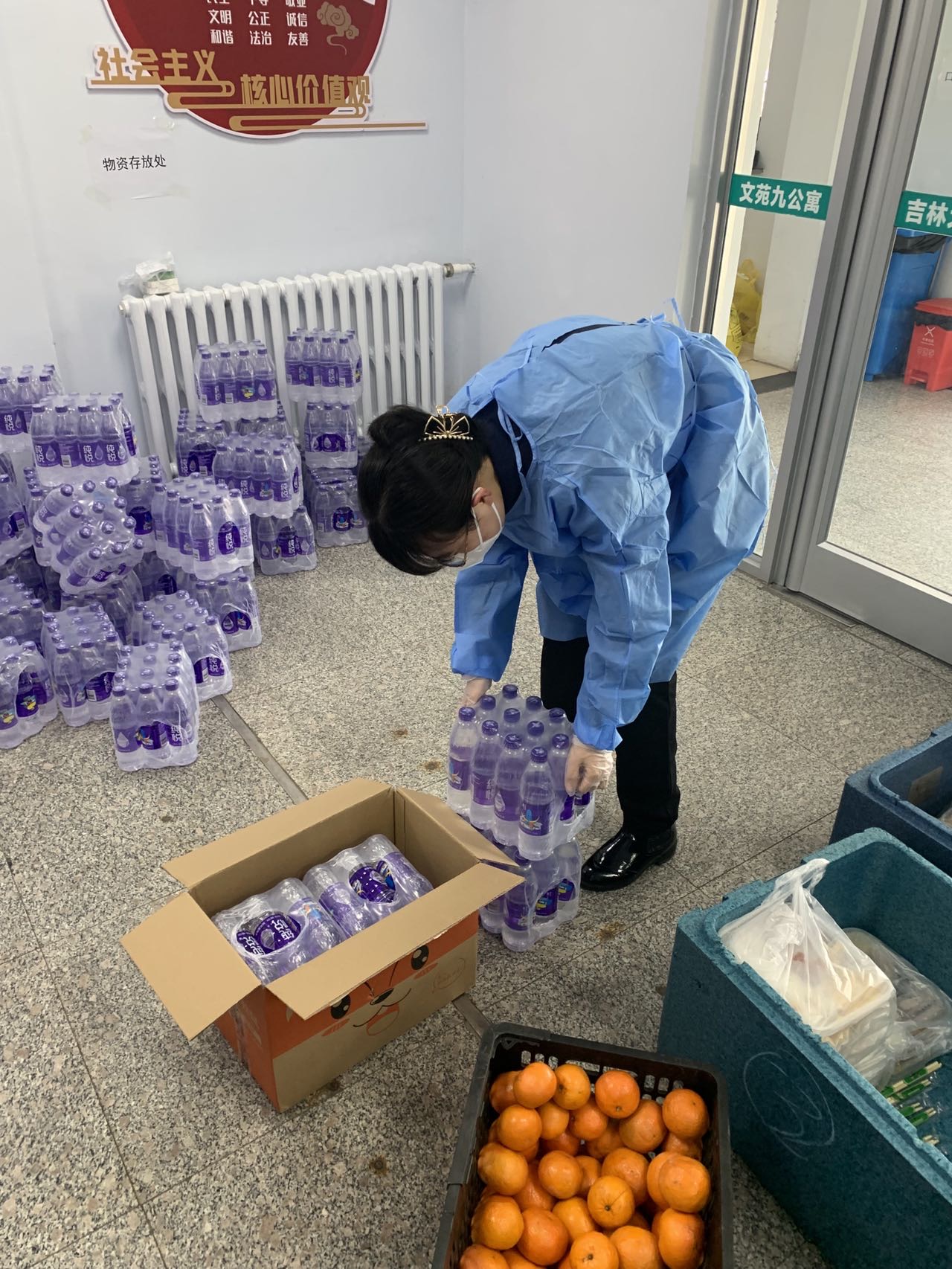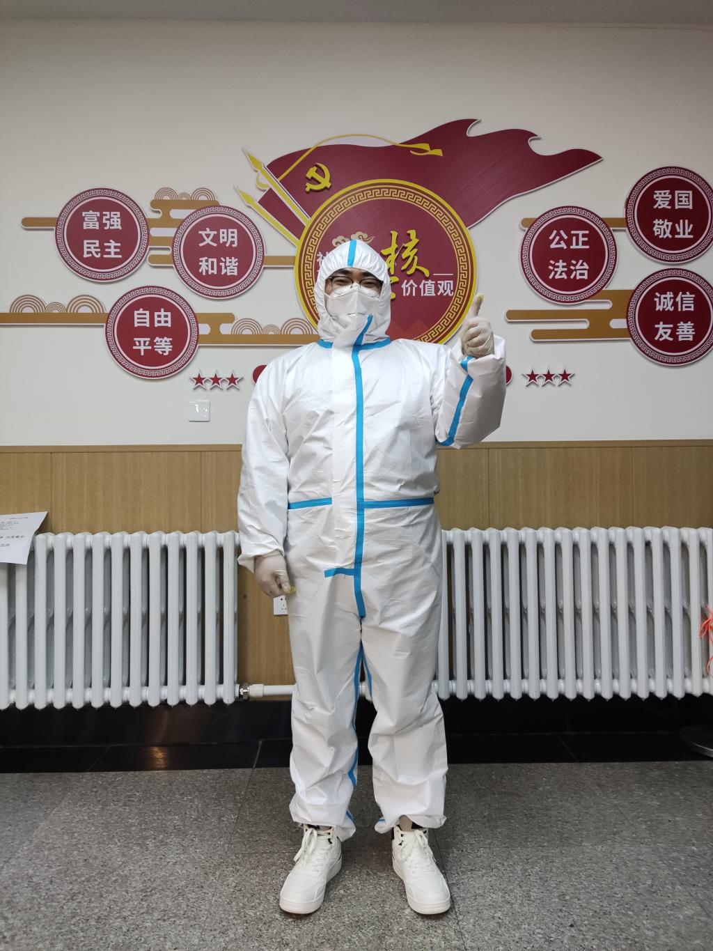 博士生志愿者无一人退缩,他们把个人融入集体,全心全意服务好同学,以最好面貌做好了志愿者工作。只要有同学出现缺饭、缺核酸检测盒、缺一瓶矿泉水的情况,志愿者都会不厌其烦地及时补送,尽最大力量为同学们服务。2019级法律政治学博士研究生李洪川谈到这次志愿工作说:“近1个月的志愿活动中,大多数工作都是体力活,穿着防护服搬运东西,上下楼一次衣服可能就湿了,但大家很自觉,没有偷懒,没有旷工,互帮互助,真正把志愿活动当成了一种责任。”志愿本自愿,但是作为预备党员的他把志愿当成了责任,用自己实际行动践行入党誓词,发挥模范带头作用为党旗增辉添彩。
