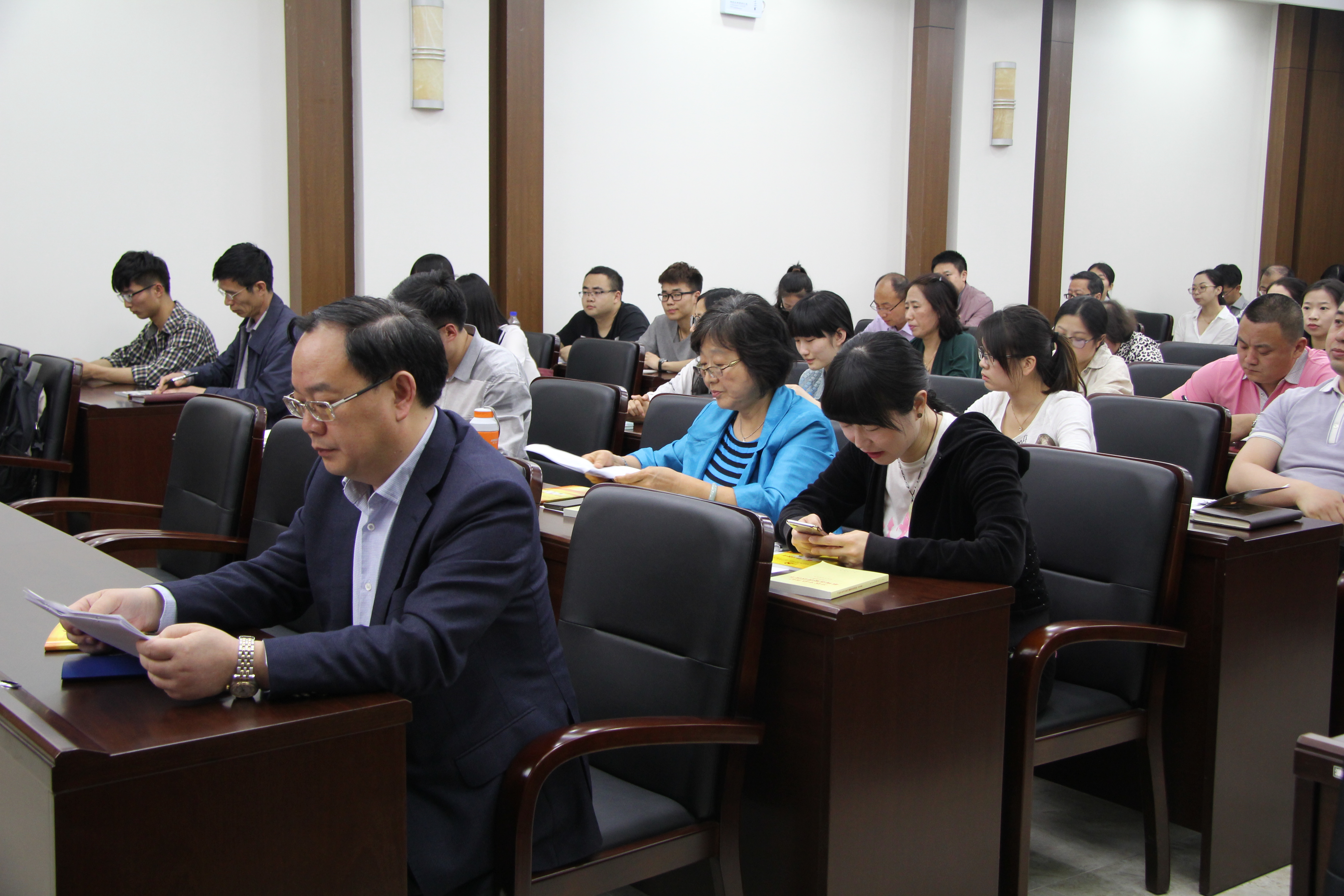 魏鹤影发言结束后,张贤明院长做了总结发言。他表示完全同意魏书记对“两学一做”学习教育意义的阐释及布置的各项措施,另外他要强调两点:一是全院党员要自觉学习,“两学一做”学习教育既是当下中国政治的重要事件,也是学院研究的重要对象,党的各项纪律、习近平总书记的重要讲话也是政治学学习的重要文献。全体党员要将政治学系与业务提高充分结合起来;二是全院党员要自觉去做,将“两学一做”学习教育的要求落实在业务上,围绕学校、学院的中心工作,做合格党员,做“四有”教师。