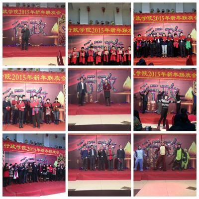 从政治学系党支部的合唱《革命人永远是年轻》、《明天会更好》到国际政治系党支部的合唱《团结就是力量》和《同一首歌》,从行政管理系党支部的《送别》、《风吹麦浪》、《敖包相会》、《朋友》和《敢问路在何方》五首歌曲联唱到电子政务系党支部的哑剧和广场舞《美了美了》,以及行政机关党支部的小合唱《相亲相爱》和舞蹈《小苹果》,中间还穿插着紧张刺激的小游戏,更有为本命年教职工赠送红袜子红腰带的传统环节,整场联欢会高潮迭起、异彩纷呈,一句句歌声、一声声祝福,表达了全体教职工对国产色情