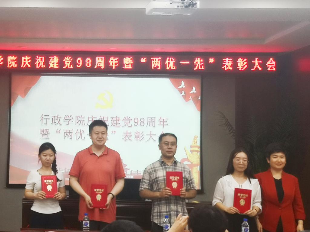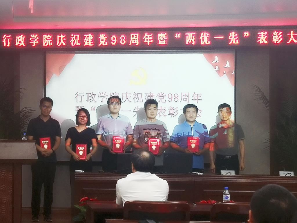 党委书记魏鹤影代表学院党委向受到表彰的集体和个人表示祝贺,向学院全体党员致以节日的问候;她指出学院正处在一流学科建设的重要机遇期,我们必须以改革创新精神全面加强党的建设,不断加强领导班子建设、强化支部建设、加强队伍建设、加强党风廉政建设,不断增强“四个意识”,坚定“四个自信”,做到“两个维护”,继往开来,开拓进取,为推进学院“一流学科”建设不断添砖加瓦,以实际行动和优异成绩庆贺党的98岁生日,迎接祖国的70华诞。