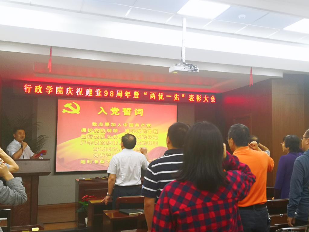 党委在东荣大厦B303会议室隆重召开庆祝中国共产党成立98周年暨“两优一先”表彰大会,学院全体党员参加了会议,大会由副院长范斌主持。
