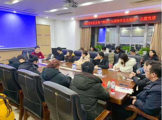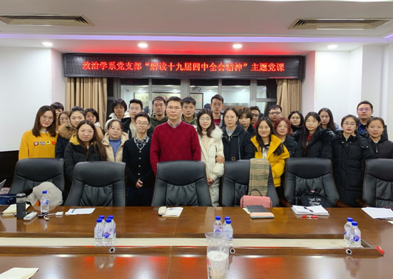为深入贯彻学习党的十九届四中全会精神,12月23日晚,政治学系党支部于东荣大厦1214会议室举行了“解读十九届四中全会精神主题党课”系列学习活动,由国产色情