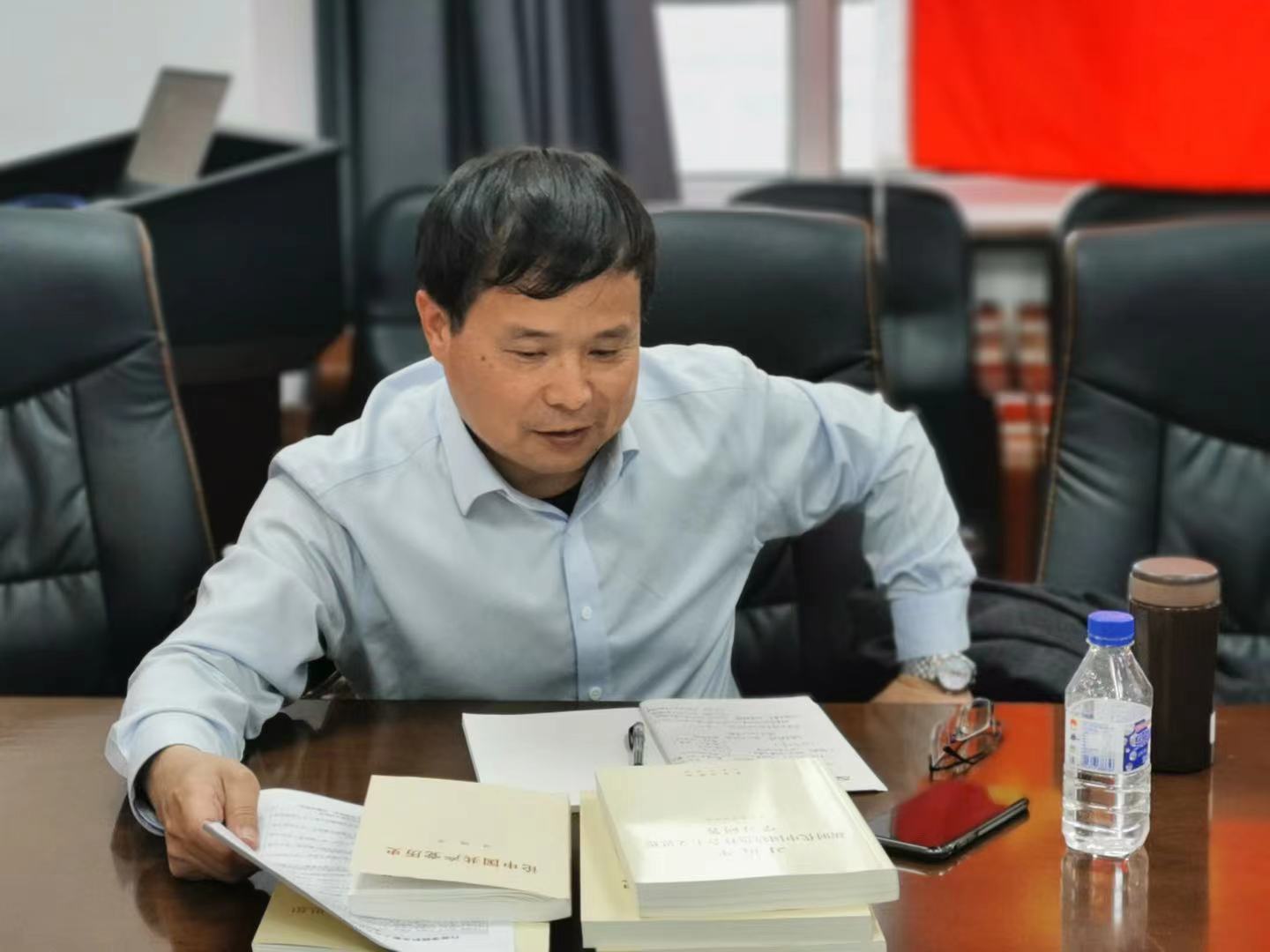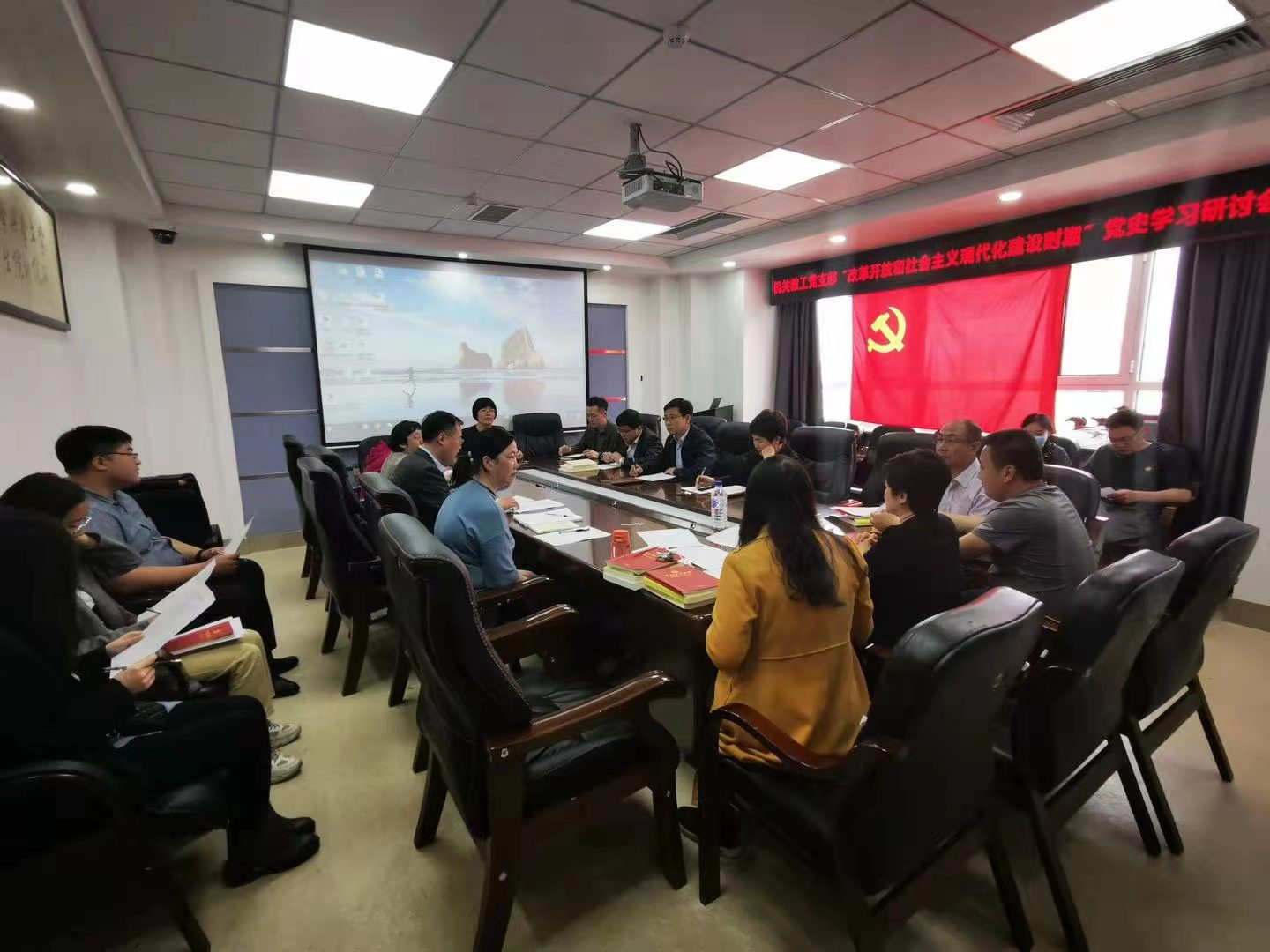 为全面落实学校、学院党委党史学习教育部署要求,6月4日下午,机关教工党支部按照支部党史学习教育第一阶段学习计划,以专题读书班的方式在东荣大厦1214会议室集中学习研讨改革开放和社会主义现代化建设新时期党史。学院党委书记马景惠、学校党建工作联络员魏鹤影、学院党委副书记兼副院长张洁、副院长季洪涛及支部全体党员参加会议,会议由支部书记密佳音主持。