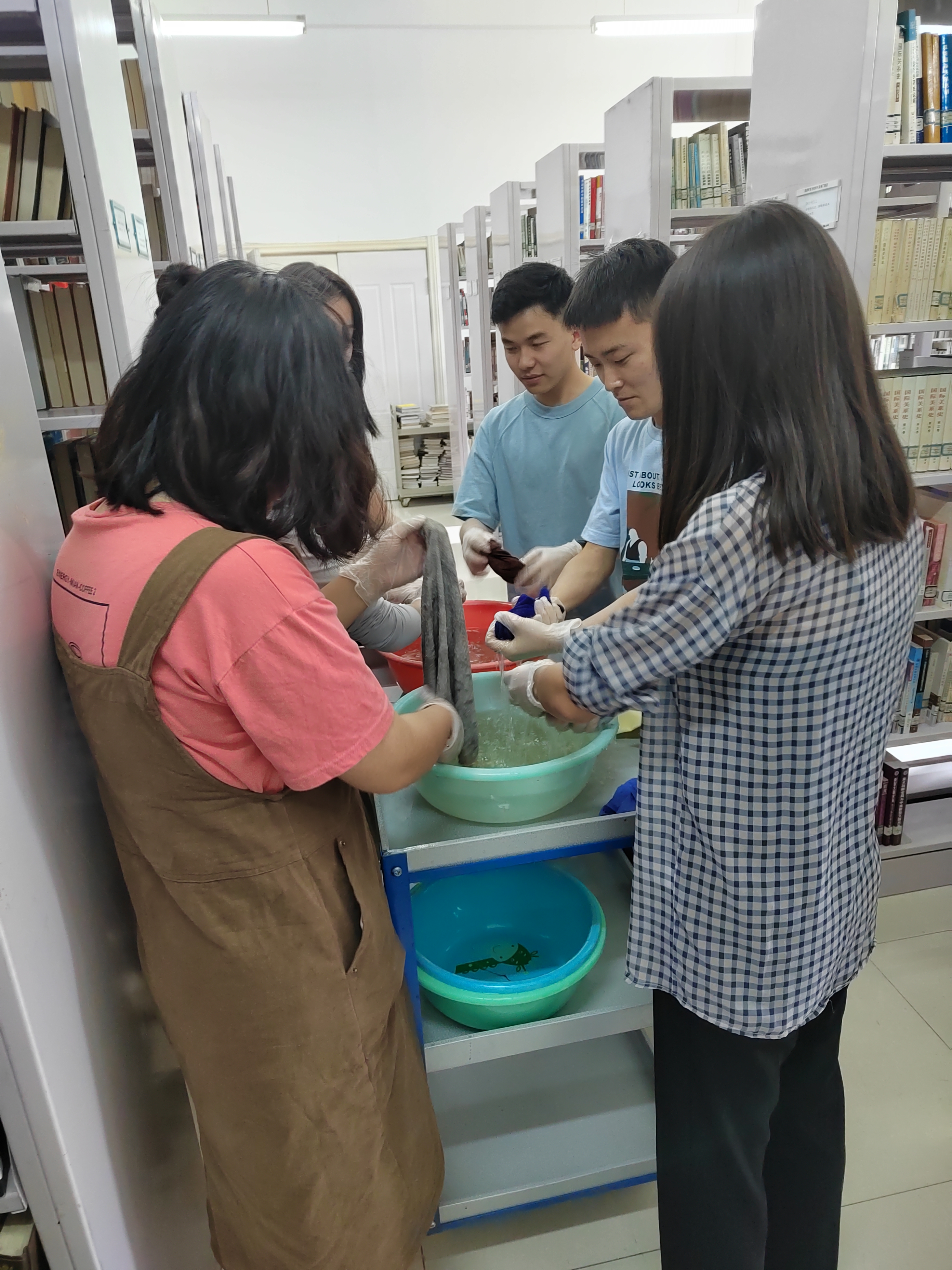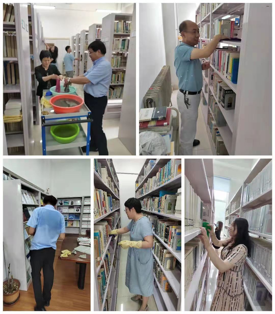资料室,位于南区匡亚明楼,全屋202平方米,收集有图书、期刊2万余册,是学院师生查看借阅专业文献资料、学术期刊的重要场所。为给学院师生营造一个更加舒适宜人的学习、工作环境,机关教工党支部的党员们与研究生党员们一起开展了清洁大扫除活动。师生党员们相互配合,积极劳作,将资料室的全部办公区域、各卫生死角进行了彻底清扫。在一道道穿梭忙碌的身影和一片轻松愉快的气氛中,清洁工作开展的井然有序效率十足,很快便让图书资料室的环境焕然一新,窗明几净。