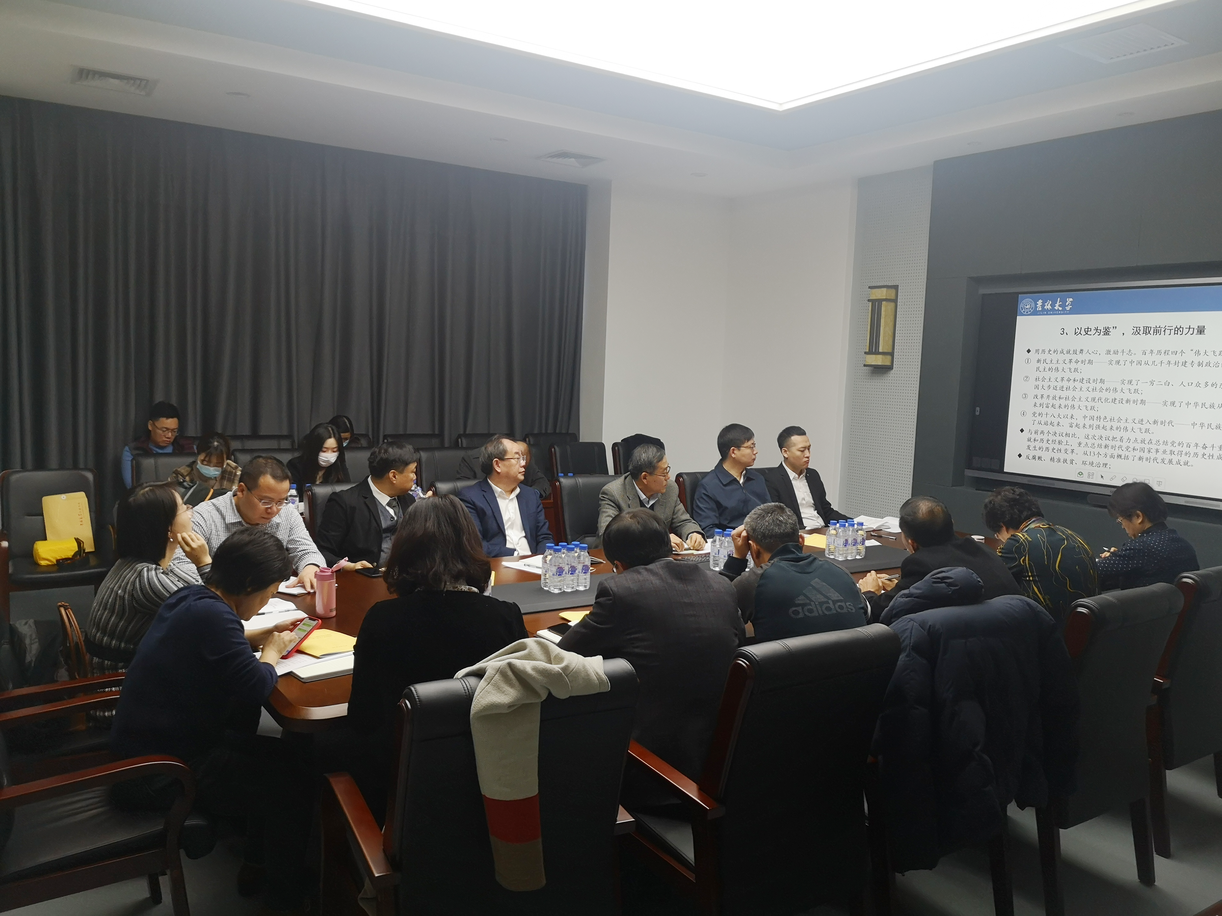 在东荣大厦B304会议室召开党委理论学习中心组学习(扩大)会议暨党的十九届六中全会学习辅导报告会,专题学习党的十九届六中全会精神,邀请国家“万人计划”首批哲学社会科学领军人才周光辉教授作专题辅导报告。学院党委委员、党员领导班子成员、各系主任、教工党支部书记、部分教师党员参加集体学习,学校党史学习教育第四指导组全体成员列席会议。会议由党委书记马景惠主持。