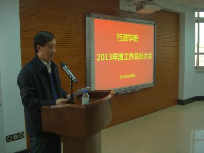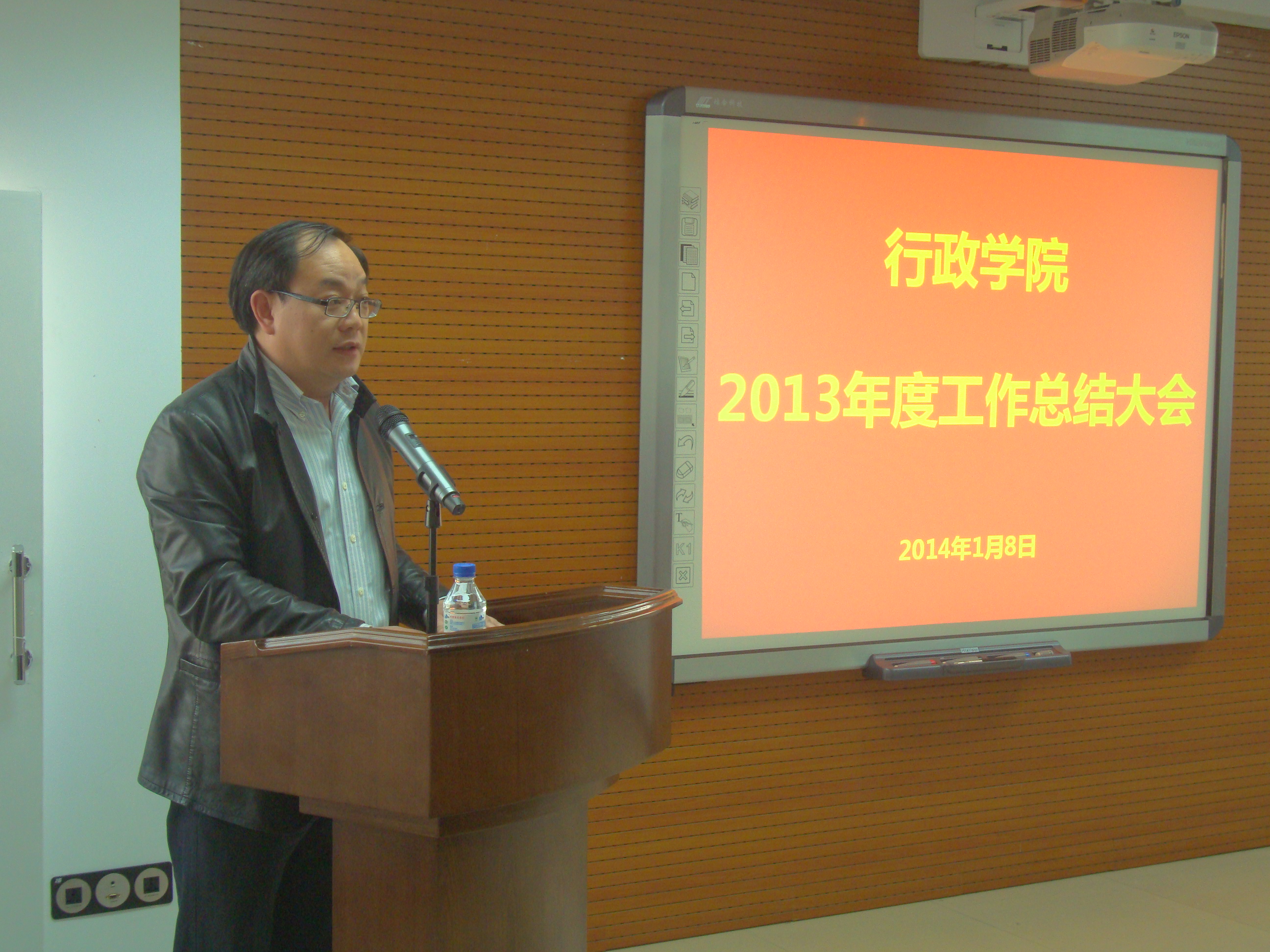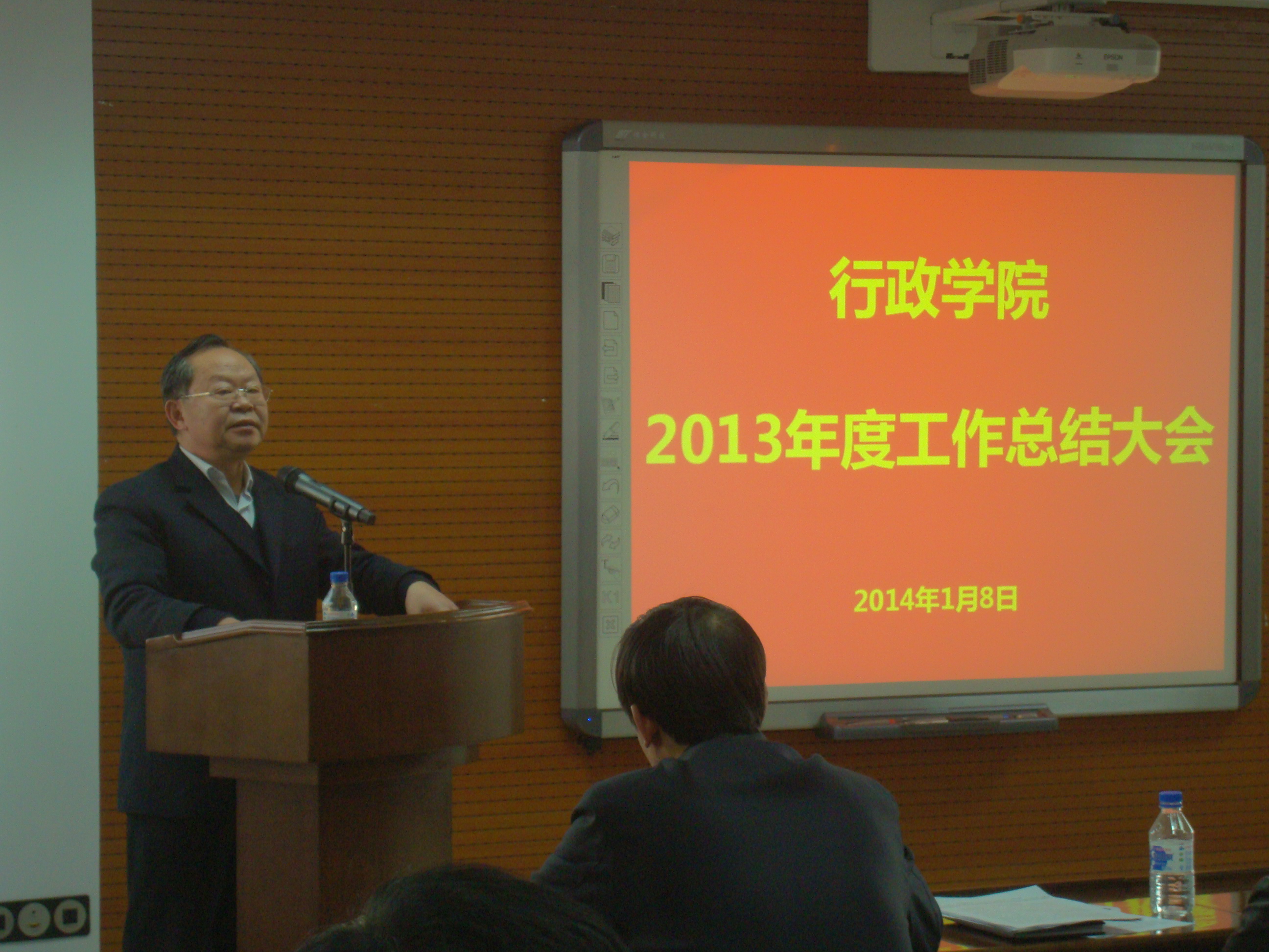 2013年度的学术和行政工作。他从人才队伍结构逐渐优化、整体水平呈现上升趋势;科学研究质量稳步提升、学术影响不断扩大;人才培养模式改革不断深化,成效显著;MPA教育不断规范,社会效益和经济效益均明显提升;学科平台建设扎实推进,成绩斐然;学术交流持续活跃,学术氛围日益浓厚;公务员培训工作努力进取,保持了良好势头;管理制度化建设不断加强、制度执行力不断提高;院庆工作充分展示学院发展的成就与影响,广获好评等九个方面汇报了一年来的工作和取得的成绩。他还在分析了国产色情