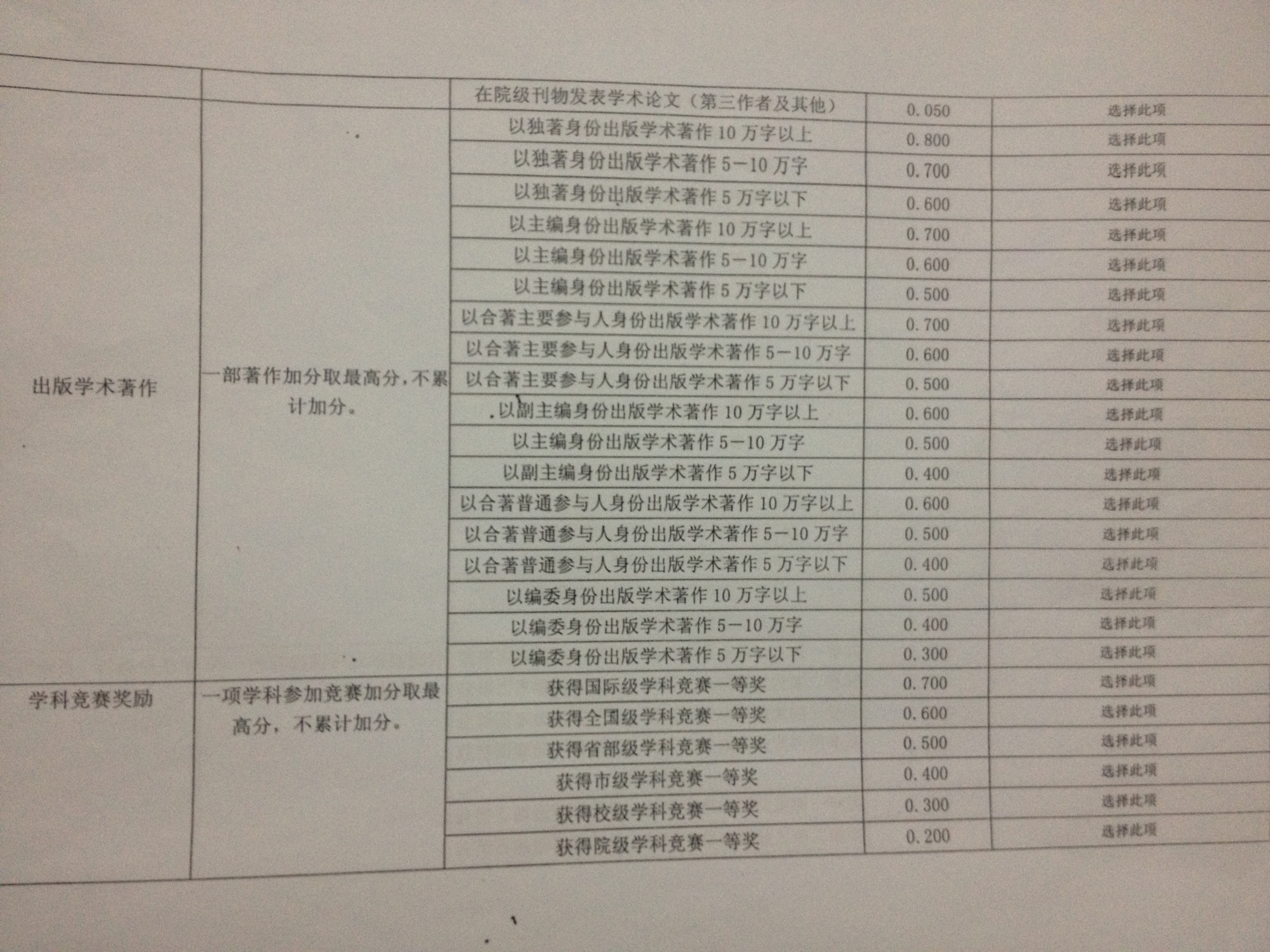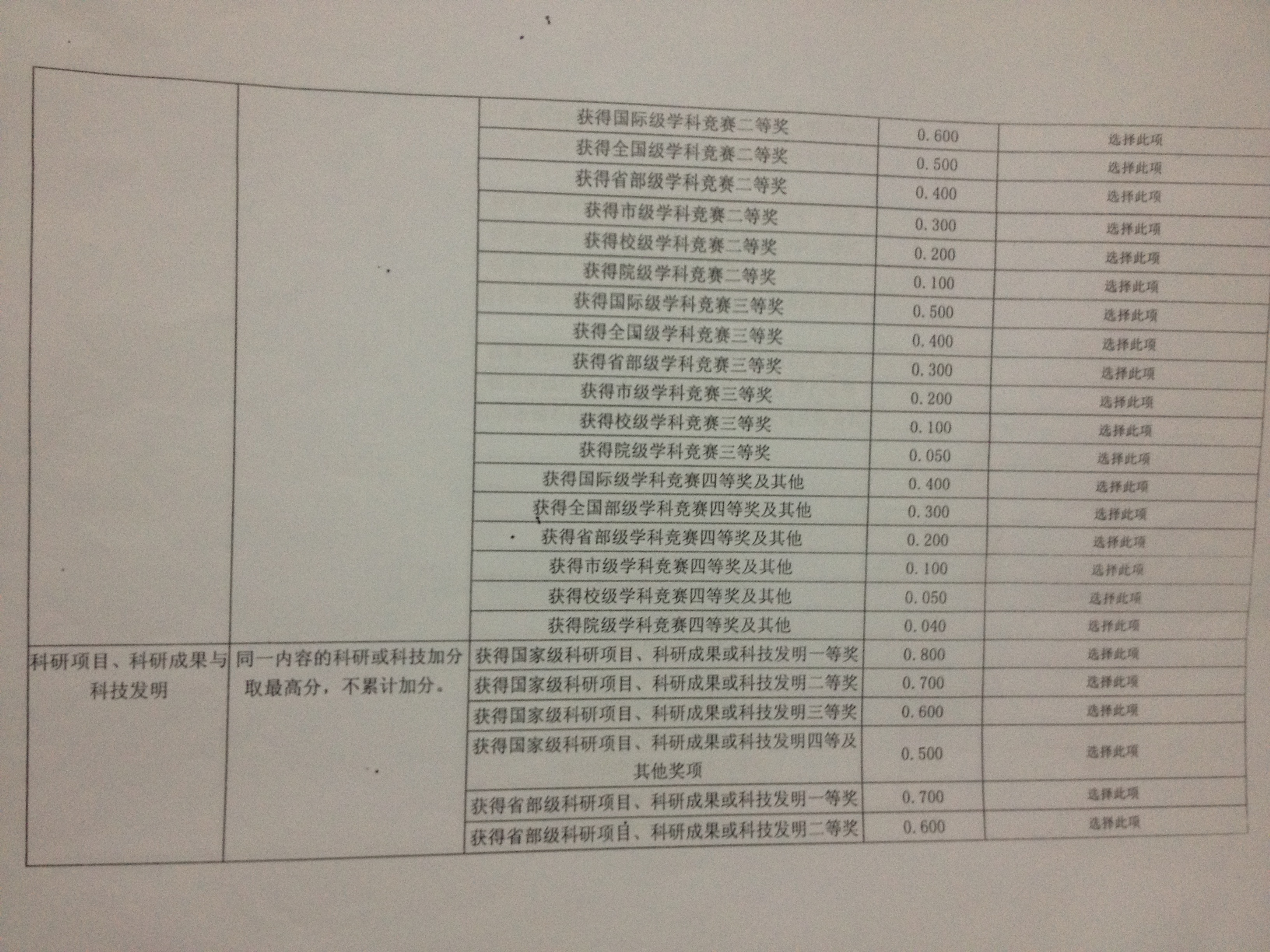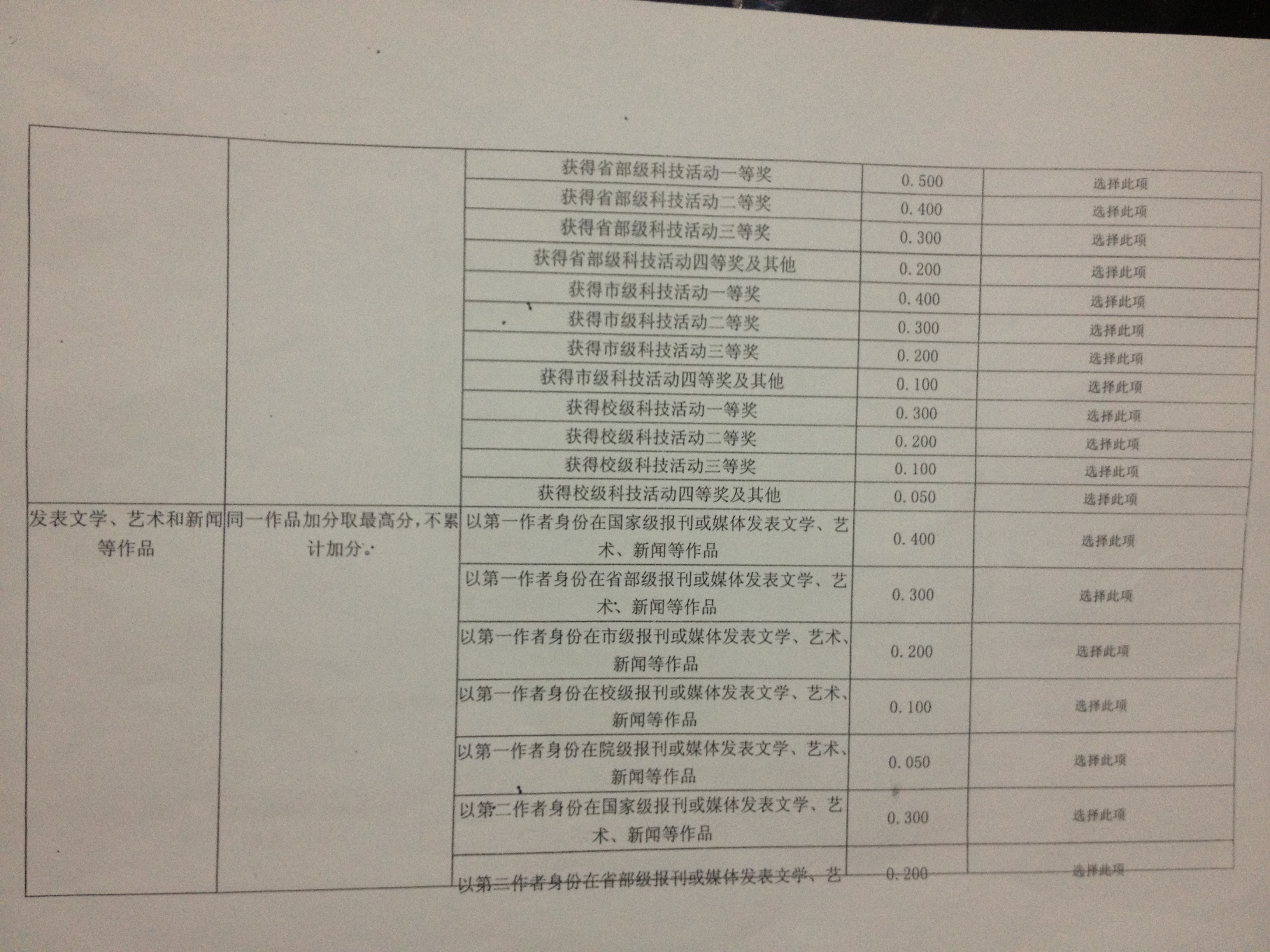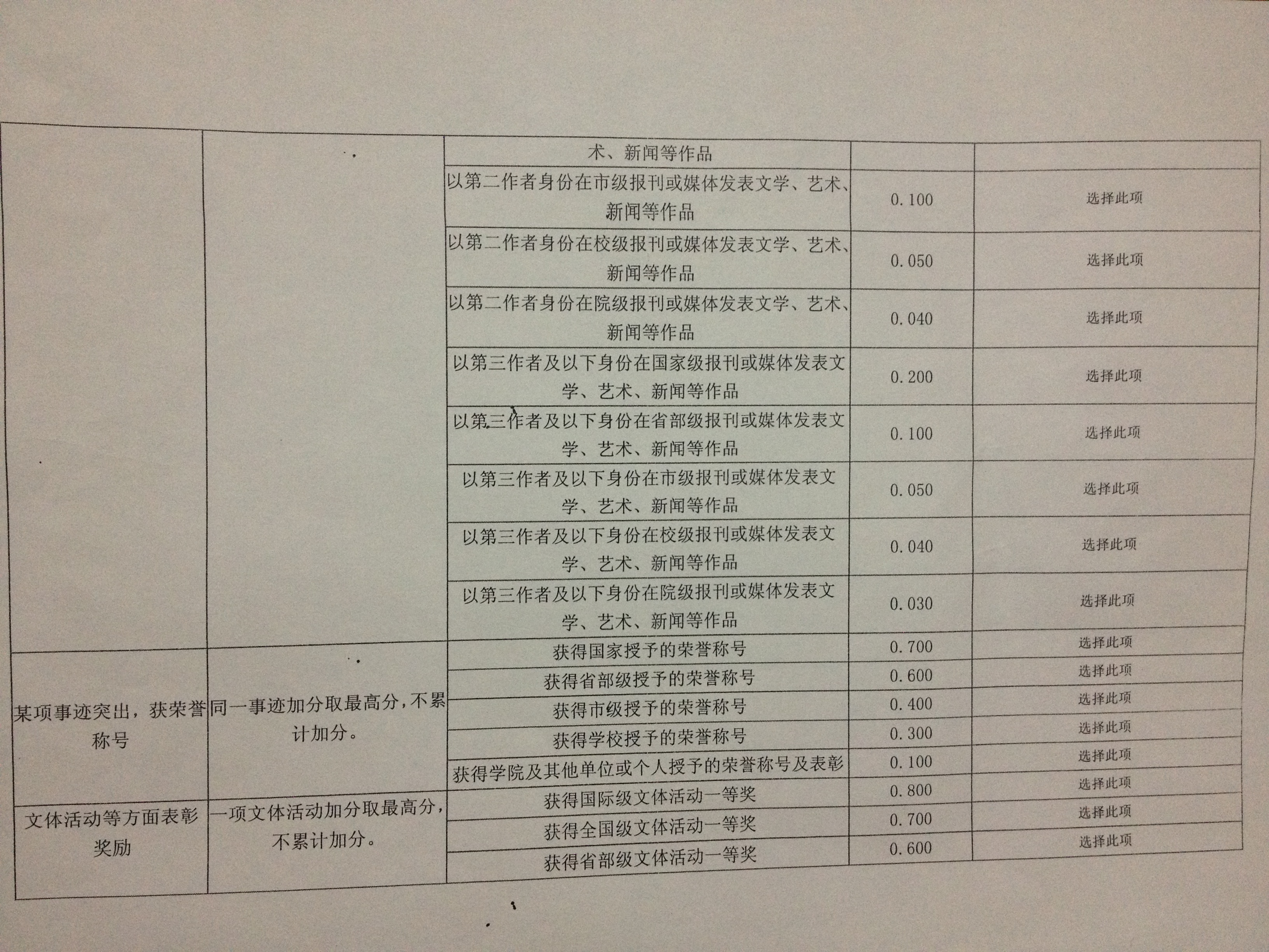 净加减分的评定标准予以公示(见图片),请同学们按照评定办法提交申请材料。