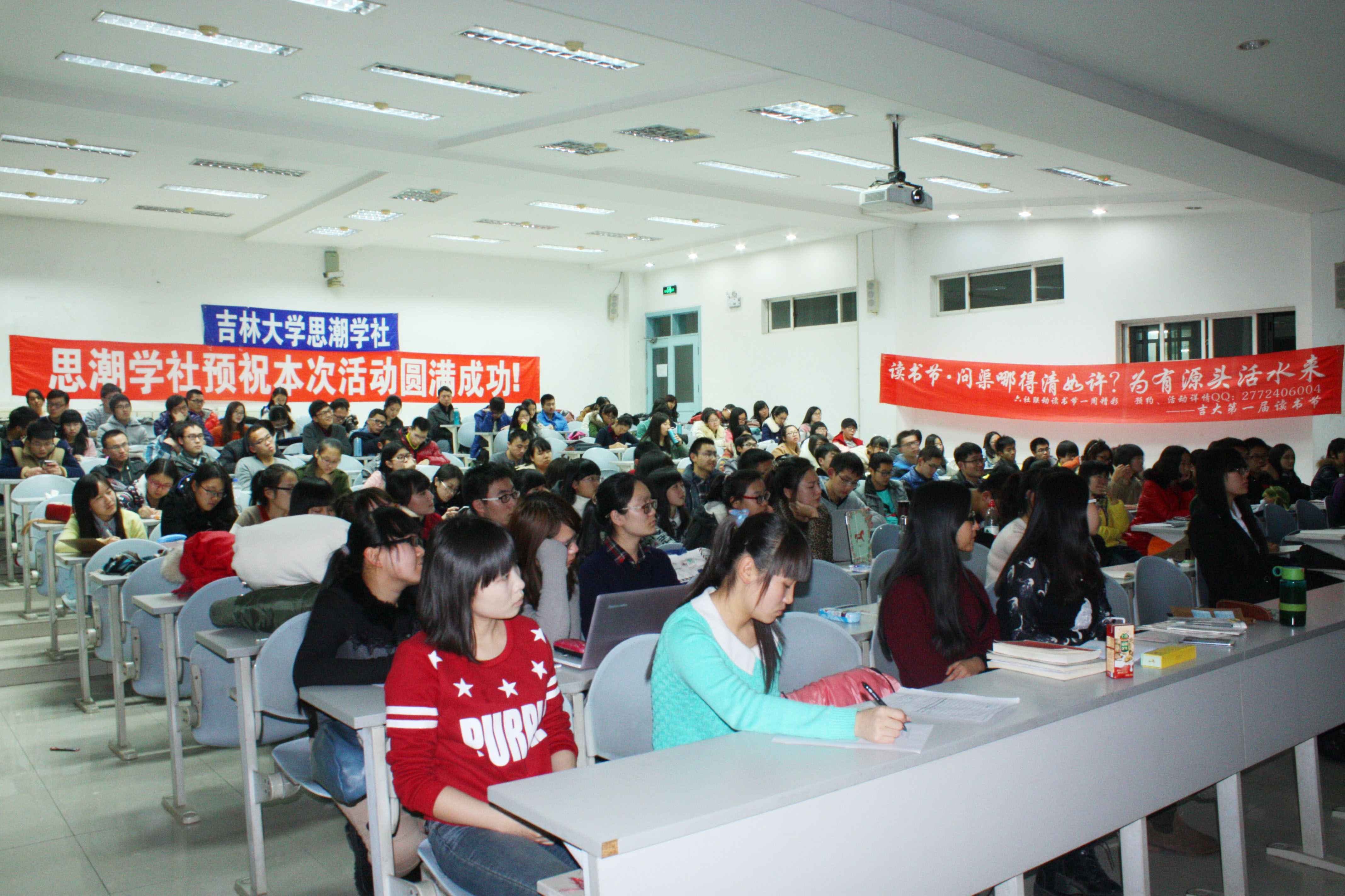 本次“书里书外”讲座是由书友团队发起,思潮学社、暖僖、自强社、云帆杂志社、图书交流学社、中华文化研究会共同主办的吉大首届读书节系列活动之一。