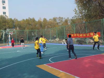 新生篮球赛在中心校区篮球场成功举办。本科生辅导员曲畅竹来到现场为球员们呐喊助威,并为获胜队伍颁发了奖杯。