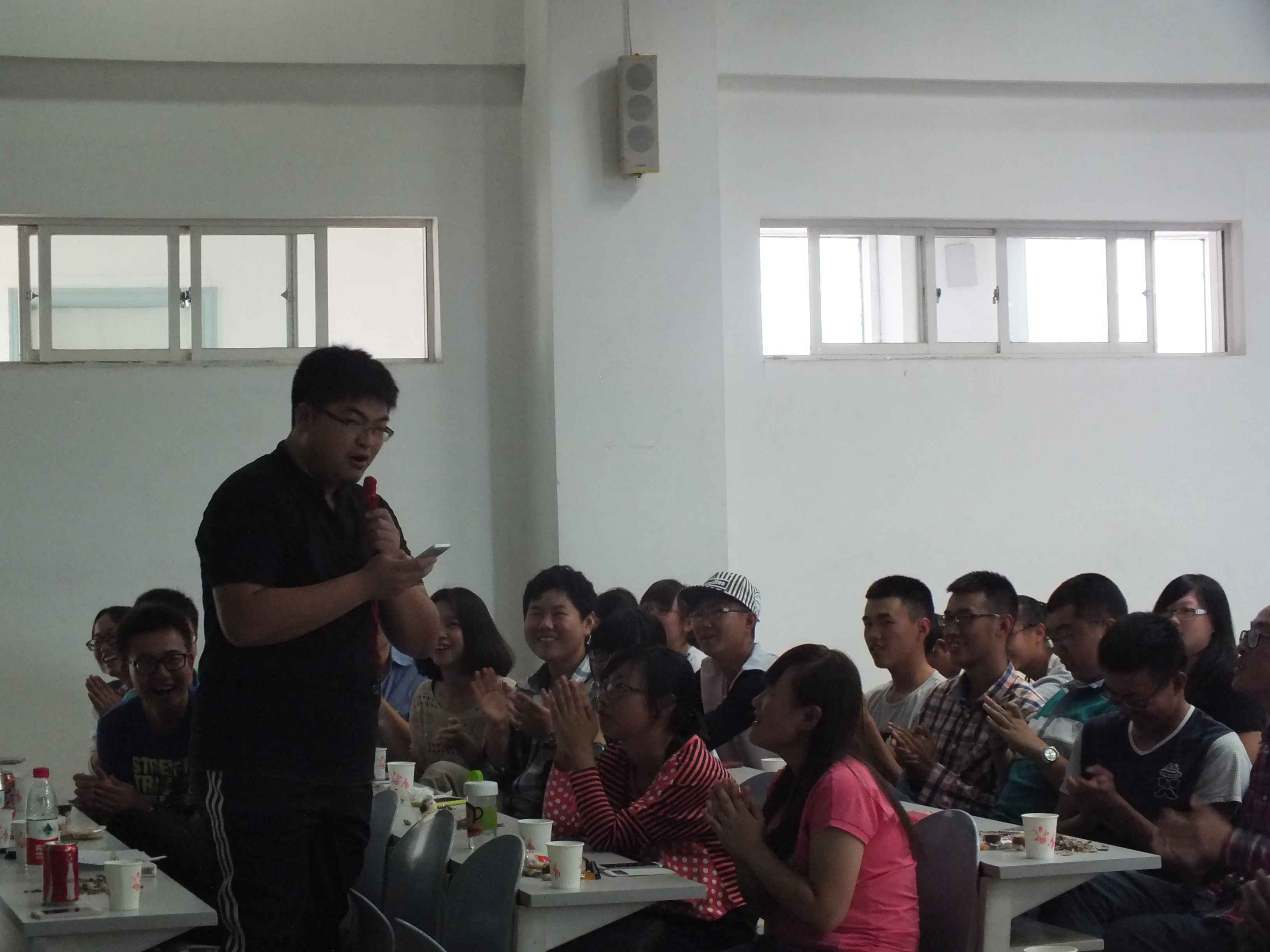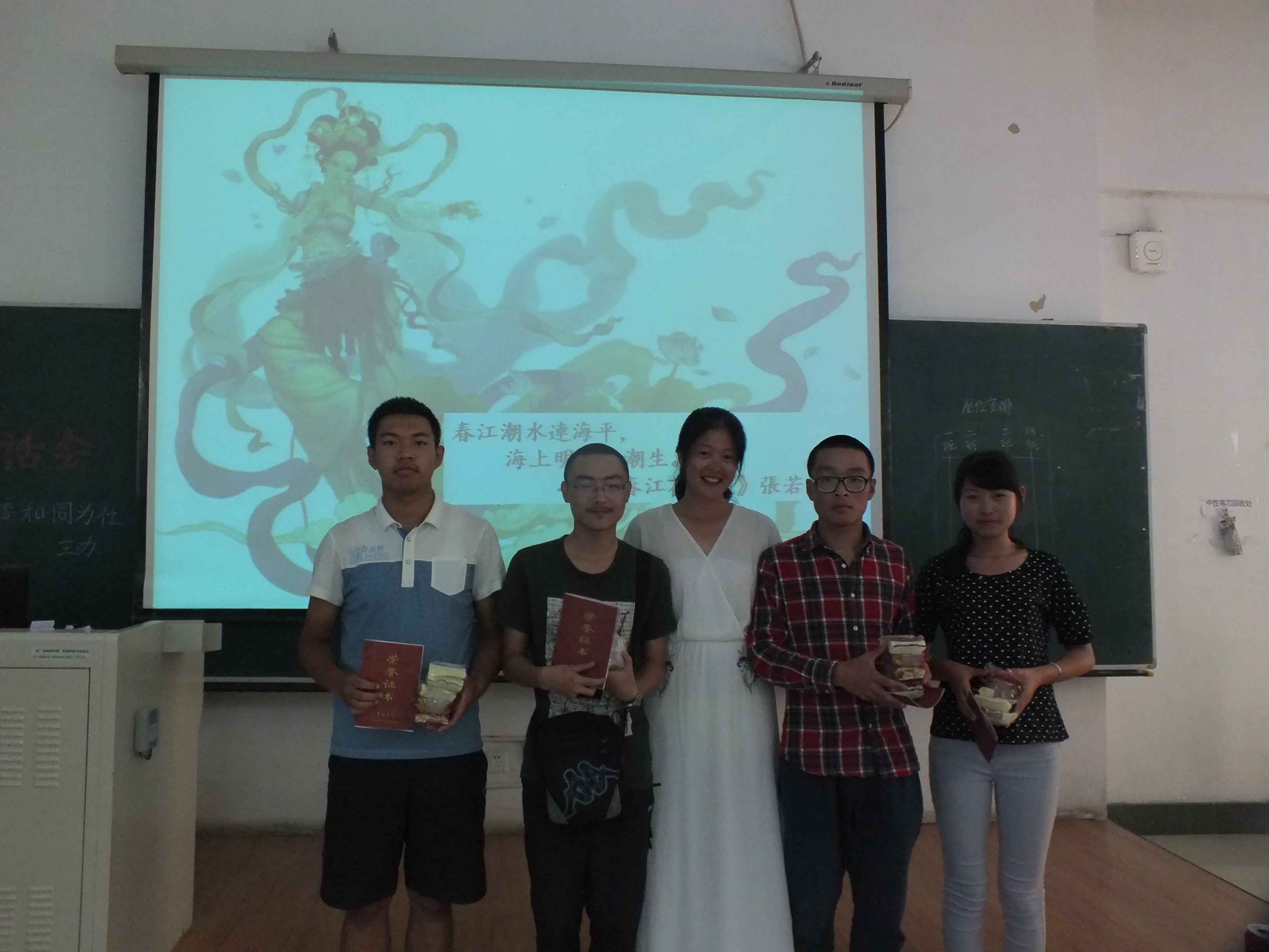 中秋茶话会主要以游戏的方式进行,共设置了“快乐传真”、“歌曲接龙”、“微信摇一摇”、“你来比划我来猜”和“谁是卧底”等五个游戏环节。在游戏环节中,同学们优美的歌声、动感的舞蹈,诙谐的表情、夸张的动作使得茶话会现场掌声不断、笑声不息。在场师生不时互动游戏,让大家充分体会到了行政大家庭的温馨与欢乐。游戏过后,辅导员刘洋、曲畅竹与2012级同学共同演唱一曲《但愿人长久》,将中秋佳节的美好祝愿送给大家。之后,刘洋与曲畅竹分别为获奖班级颁发奖状与纪念品并合影留念。在茶话会的最后,曲畅竹致辞,她希望每位新生能把国产色情