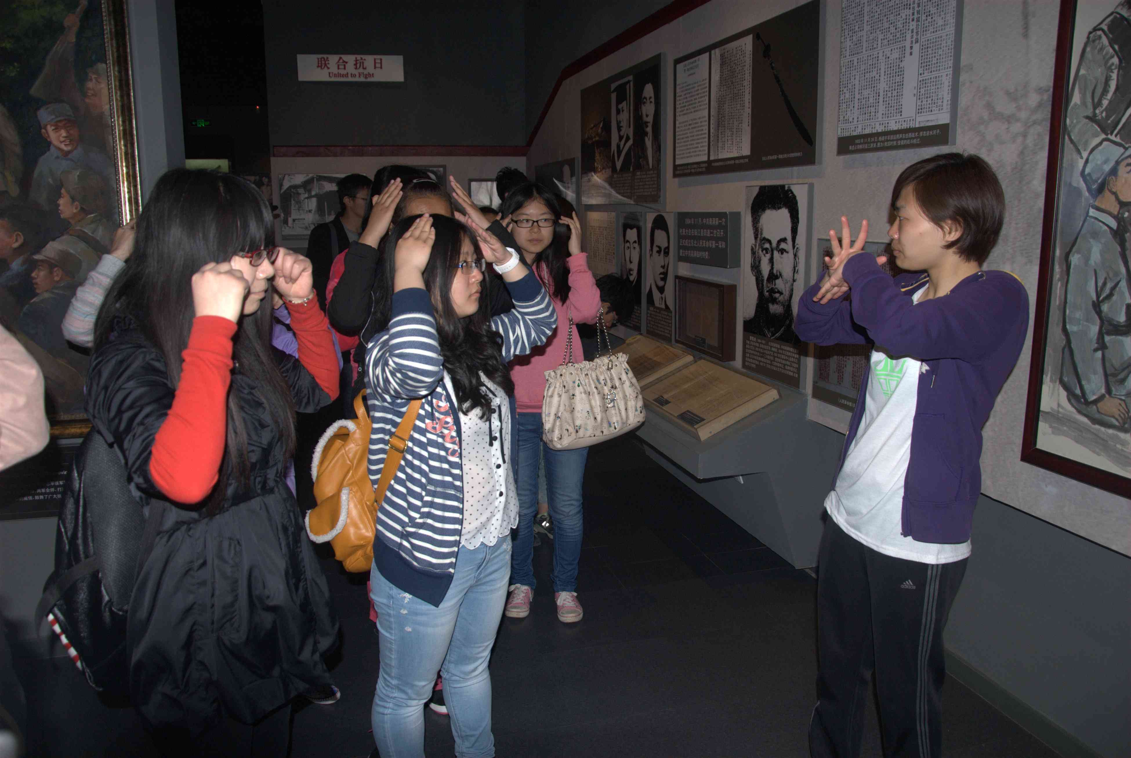 “博闻笃行园”志愿服务与社会实践基地)2014年国际博物馆日“博物馆藏品架起沟通的桥梁”主题活动的邀请,于2014年5月18日上午再次派出“政能量”志愿者协会志愿者前往吉林省博物馆进行志愿服务与社会实践活动,并接受了长春特殊教育学院培训人员组织的手语培训。