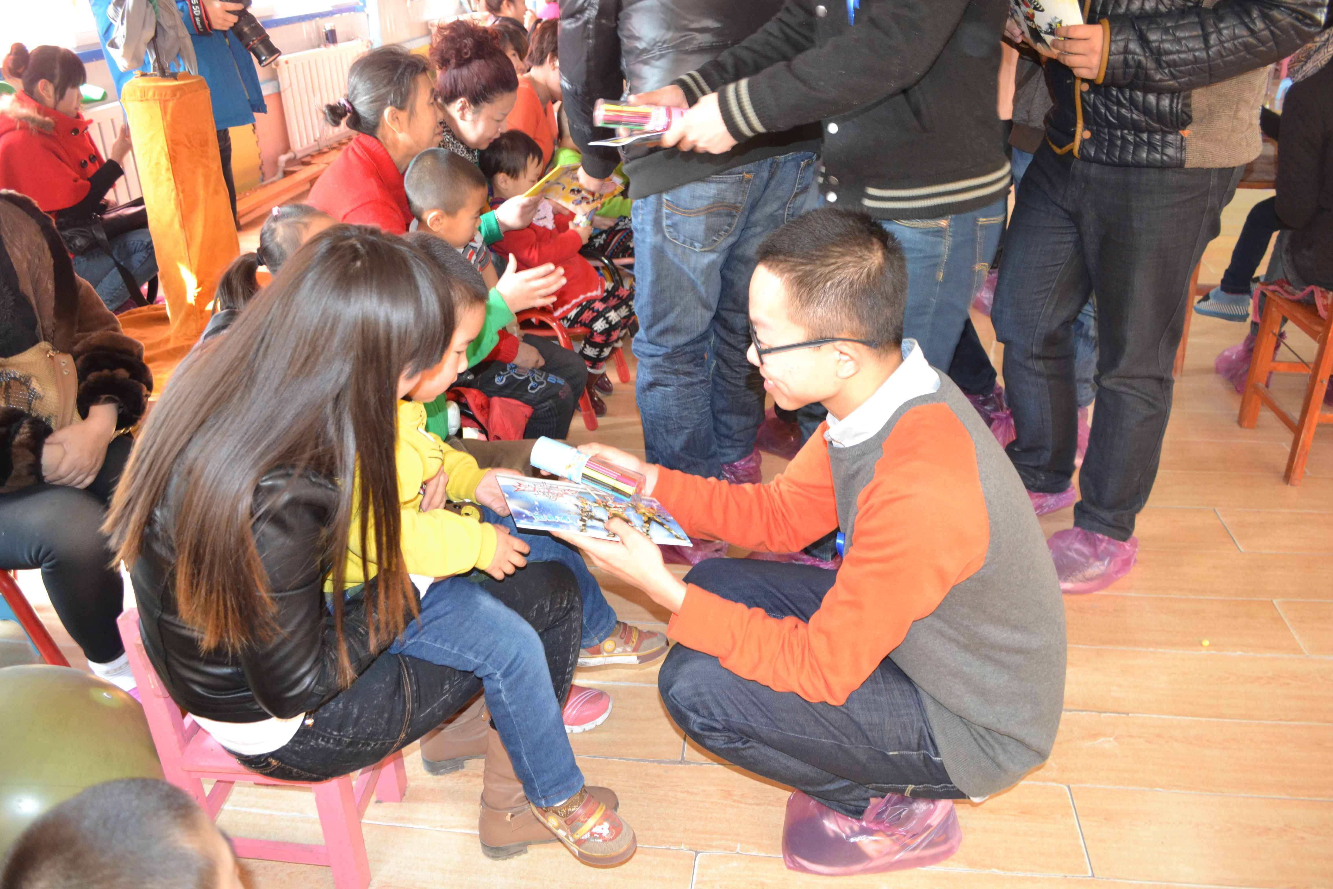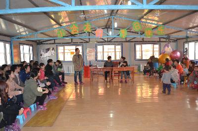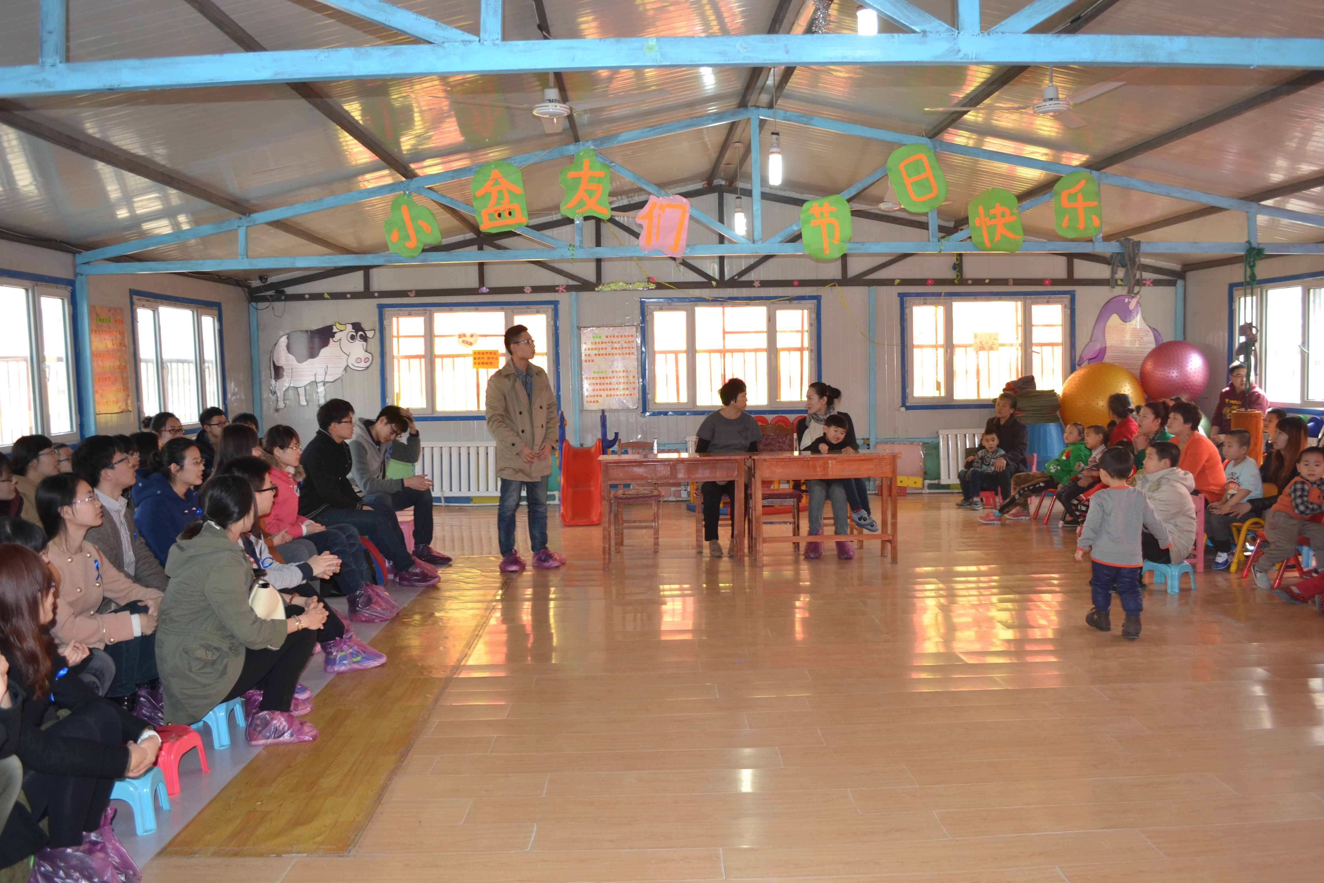 发言,他对康复中心的学生与家长能来参加此次活动表示感谢并祝此次活动顺利举行。此次活动共分为三个部环节,第一个环节是馈赠礼物,志愿者们将事先准备好的彩笔、画本等文具送到孩子们的手中,希望他们好好学习、快乐成长。随后,志愿者们与孩子们结对进行游戏和康复训练,两三个自愿者与一个孩子组成小组,志愿者们有的教小朋友画画,有的与孩子玩球,有的看护孩子进行平衡木训练,在游戏中教授孩子们一些简单的生活、学习技能。虽然有的孩子开始会排斥志愿者,但志愿者们毫不气馁,耐心的陪着自闭孩子,活动现场充满孩子与志愿者的笑声,成了一片欢乐的海洋。活动之后,志愿者们还帮助康复中心打扫了操场,在志愿者们辛勤的劳动后,康复中心变得愈加干净整洁。