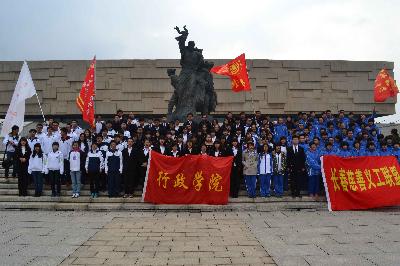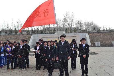 学生代表王子涵(2013级)作为领誓人,带领全体同学面对庄严神圣革命烈士纪念碑做出庄严承诺。