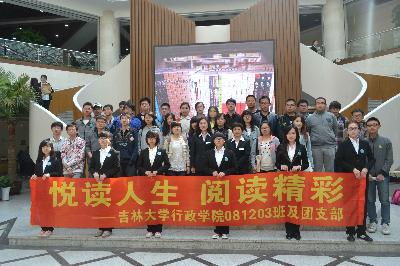 8时30分,同学们到达长春市图书馆,参观经过装修改造后重新开放的图书馆。同学们经历着一种全新的阅读体验:自助式借还书服务、数字化的阅读设备、来自各地的图片展览、名为“聆听春之声”的音乐活动。习近平总书记曾说过“读书已成了我的一种生活方式。读书可以让人保持思想活力,让人得到智慧启发,让人滋养浩然之气。”。通过一系列的亲身体验,同学们既感受到阅读的多种乐趣,也意识到将“读书作为一种生活方式”的重要性。随后,同学们参加了由我院政治学系硕士生导师马雪松副教授主讲的题为“社会变革与青年学术阅读”的专题讲座。通过此次讲座,同学们更加深刻认识到读书不仅事关个人修为,更关系着民族的素质和竞争力,影响着国家的前途和命运。讲座结束后,同学们与老师及市图书馆工作人员进行合影留念。活动结束后,同学们纷纷表示:本次活动增强自己的读书意识,明白了在实现中国梦的伟大征程中,需要每一个新时期的大学生通过阅读夯实知识根基、提升自身素质、激发精神动力、汇聚起同心共筑中国梦的强大正能量。