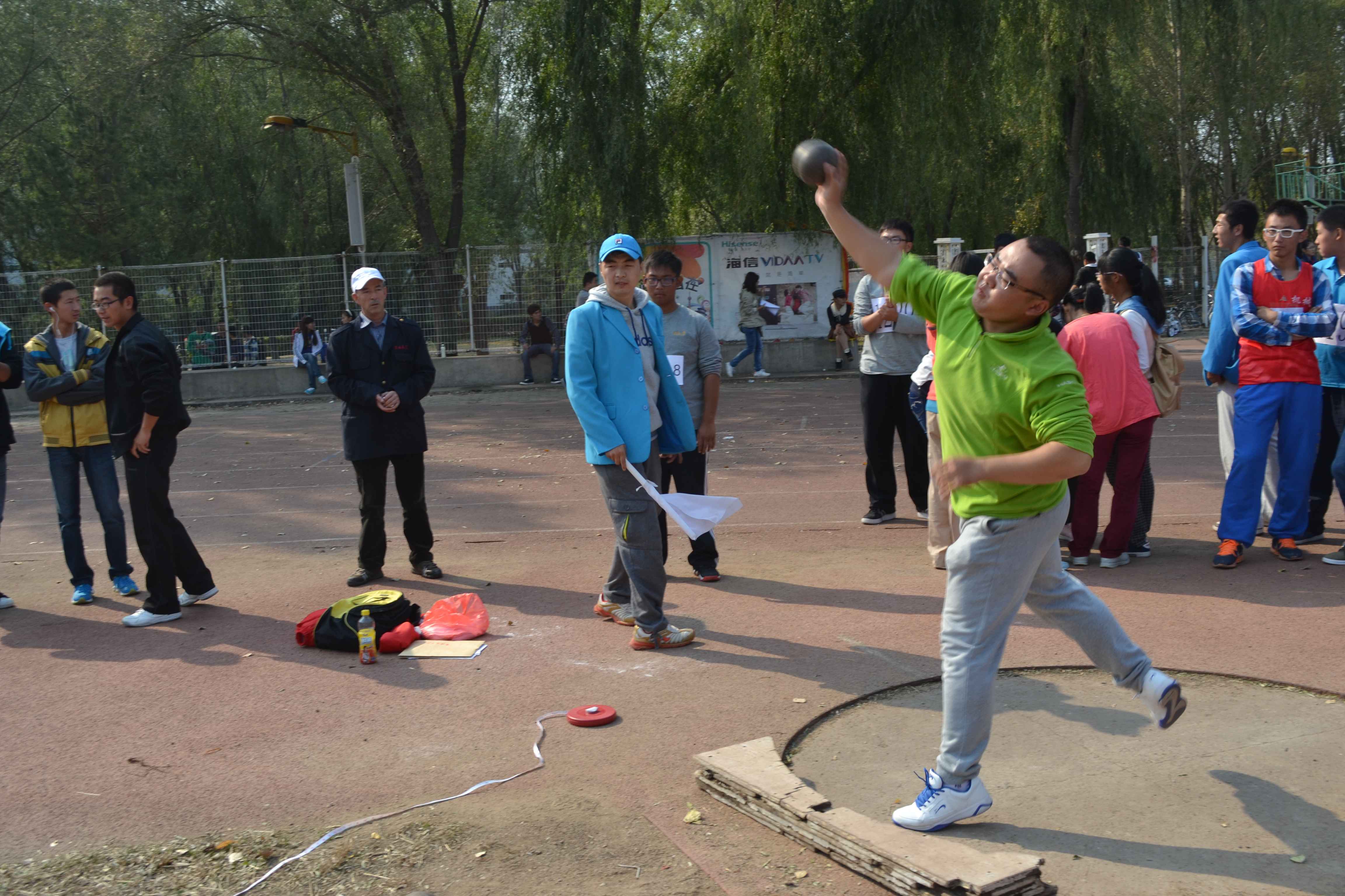田径场上,行政健儿们奋力拼搏,再创佳绩。百米跑道上行政健儿挥汗飞驰,势如闪电;三千米赛场上行政学子咬紧牙关,永不言弃;而参加跳高,铅球的行政学子们则用他们充满活力的身影展现了大一新生昂扬向上的精神风貌;时代列车项目的运动员们则更是凭着默契的配合,熟练的动作,技压群雄,勇夺小组第一名,展现行政学子们一往无前的气概。行政学子不仅用高超的竞技水平和出色的赛场表现赢得了现场观众的一致好评;同时,他们在比赛中所展现出的“友谊第一、比赛第二”的竞技体育精神也令人钦佩不已。行政大一新生用汗水为学院争得了荣誉,通过他们的不断努力,以顽强的意志,再一次抒写了行政人昂扬向上的青春华章。在大一新生们为了学院的荣誉在赛场上挥洒汗水的同时,场下的学生会工作人员有条不紊地对整场比赛进行组织安排和细致的服务,积极为运动员创造良好的比赛、休息环境。