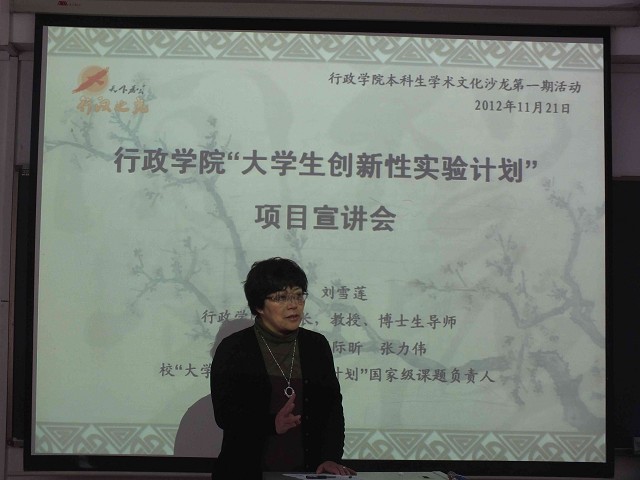 “大学生创新创业训练计划”国家级项目负责人刘际昕、张力伟分别从项目选题的创新性、研究方法的科学性和参考文献格式规范等问题向大家做了详细介绍。师生互动环节,同学们积极踊跃发言提问,刘雪莲教授针对同学们的疑惑和问题耐心的予以详细的解答。