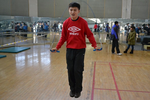 2011级学生丰朴鑫在男子组“30秒双摇”比赛环节中表现突出, 30秒内跳出了71个的好成绩,从众多的参赛选手中脱颖而出,最终勇夺冠军。接力赛中,国产色情