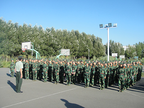 随后,新生们在教官们的带领下投入到了火热的军训之中。今年由行政学子组成的三营三连与其他连队相比不仅人数较少而且有超过三分之二是女同学,但在辛苦的训练中,行政学子却展示出更高的热情和信心。每天早上天才蒙蒙亮,新生们就开始了一天的军训,晚上八九点钟才完成一天的训练任务。站军姿、踢正步、蹲姿、跨立以及各式各样的分解动作,一遍遍的重复练习使同学们非常疲惫,但也使大家的“基本功”变得越来越扎实。