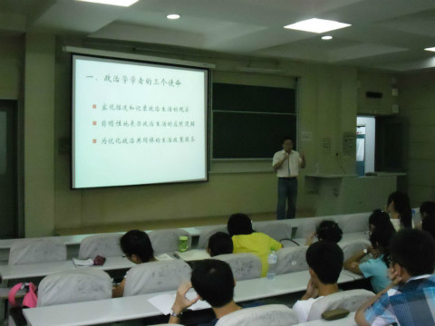 政治学系副教授、硕士生导师殷冬水博士在逸夫四阶为12级新生进行了以“政治学研究的使命与政治学的研究方法”为主题的专业教育。殷老师用幽默风趣的生活情境对专业知识进行了比拟,并结合经典作家及作品分别解释了政治学的三大使命,让同学们从感性和理性两个层面大致了解了自己的学习方向。接下来,殷老师又分别介绍了政治学研究的三种方式和政治学专业的学习方法。交流中,殷老师风趣幽默并富有见解的讲述,加之他个性十足的川版普通话,不时赢得同学们的笑声和掌声。本次专业教育活动的举办让新生对政治学有了一定的了解,并为以后的专业学习打下了基础,同时,也衷心希望新生能像殷老师祝福的那样“忘记曾经取得的成绩与辉煌,忘记曾经经历的失败和忧伤,背起行囊,在探索人类丰富政治经验与政治智慧的旅途上,自由的翱翔。”