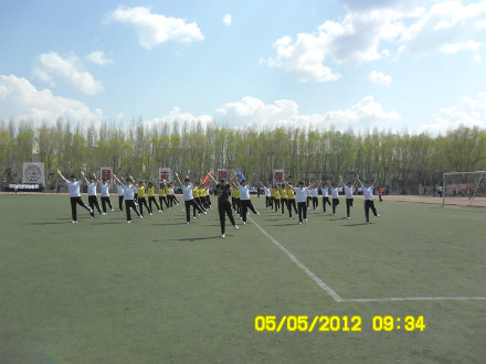 当日清晨,我院代表队早早来到了篮球场为比赛进行了最后的热身和动员。经过近两周的刻苦训练,同学们已经完全掌握了动作要领,规范了动作的细节,表演的整体效果得到了很大的提高。院学生会体育部部长邱志伟为同学们做了最后的动员,他再次向同学们叮嘱了一些动作上的细节要求和动作衔接问题,并为同学们加油鼓劲。