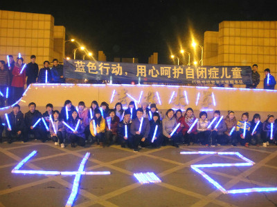 东门举行了“点亮蓝灯”活动,我院团委副书记马远俊参加了此次活动。湛蓝色天幕下,同学们手持蓝色荧光灯用爱和真心与老师们合力摆出“心”、“4、2”等图案,呼吁社会关爱自闭症儿童,关注自闭症群体。