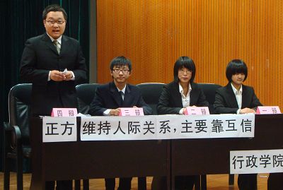 10月31日早8:30,我院于田家炳活动中心A座迎来了征战先锋论坛的首场比赛,与体育学院就“维持人际关系主要靠互信还是互利”进行了热烈讨论。我院作为正方,认为“维持人际关系主要靠互信”,经过严密论证,最终取得了胜利,顺利晋级。