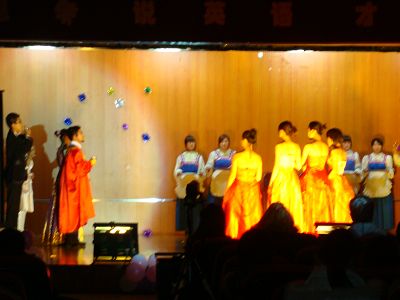 本次大赛,六支参赛队伍“你方演罢我登场”,舞台表演与多媒体放映相结合,用英语演绎了“罗密欧与朱丽叶”、“灰姑娘”等经典中外故事,也有“马加爵事件”这样让人深思的故事,并且本次活动也邀请到众多国际友人参与其中。受邀而来的外国评委则根据演员们的表演进行打分,最后评出“最佳口语奖”、“最佳男主角”、“最佳女主角”、 “剧目三等奖”“剧目二等奖”和“剧目一等奖”共6个奖项。同学们的表演都有种让评委也观众眼前一亮的感觉,不仅博得了阵阵掌声,也得到了大家一致的好评,最后商学院代表队演出的“歌舞青春”摘得桂冠。此外,阵容十分强大的到场嘉宾也为本次比赛增加了不少亮点。