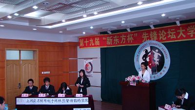 2009年11月29日第十九届“新东方”先锋论坛大学生辩论赛暨八进四选拔赛在唐敖庆楼B座成功举行,我院在比赛中战胜汽车工程学院,成功晋级四强,再展行政风采。