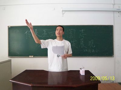 08级四班举行了题为“传承五四爱国志,实践科学发展观”的朗诵会。